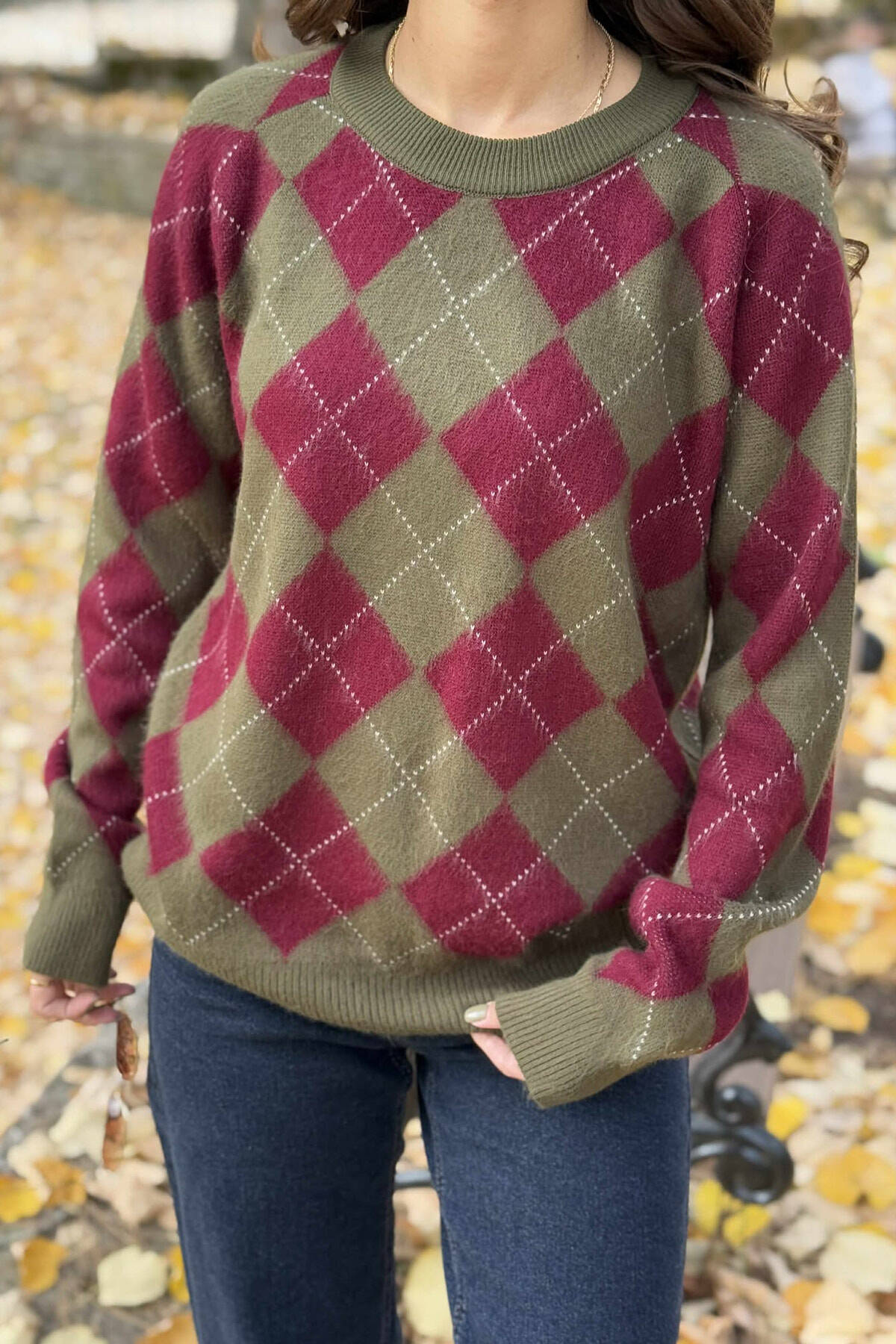 TRIKO ME DIZAJN ROMBESH PËR FEMRA NË NGJYRË GRI ME VISHNJË