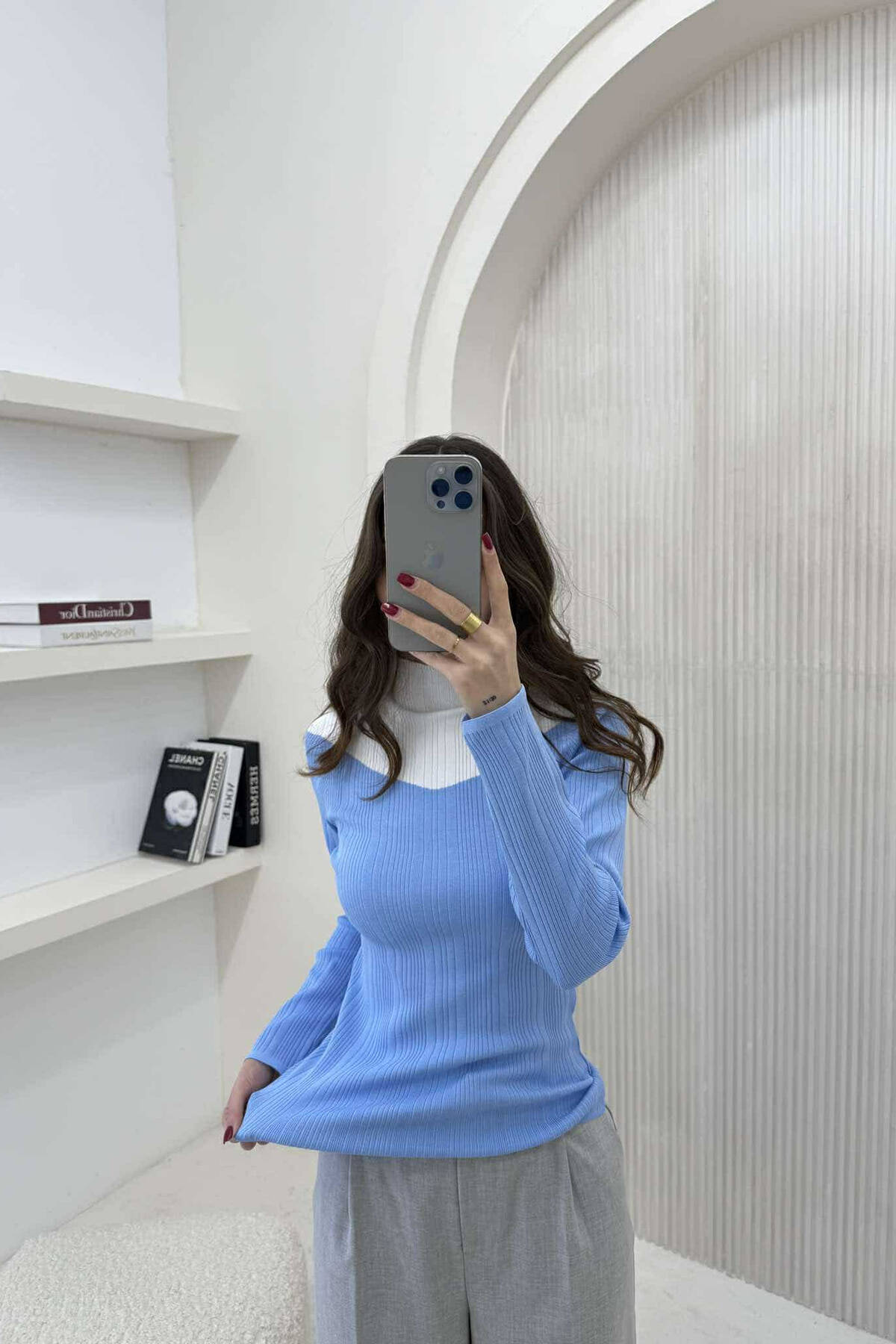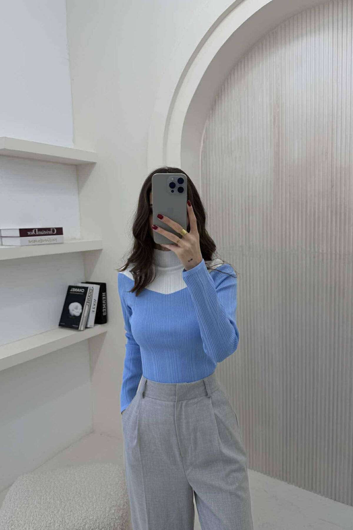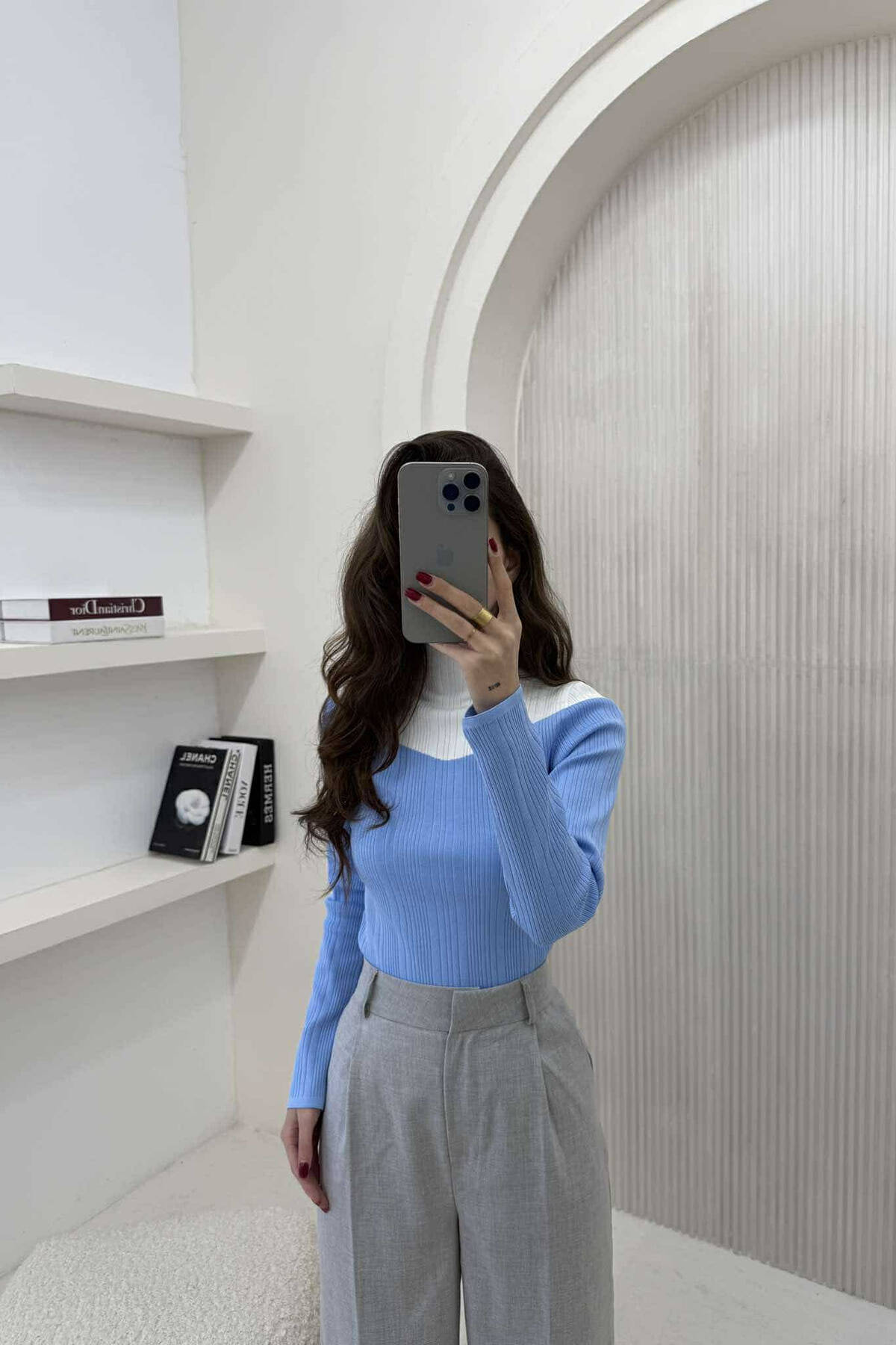 TRIKO ME DY NGJYRA DHE JAKË GJYSËM GOLF PËR FEMRA NË NGJYRËN BLU TË ZBARDHUR