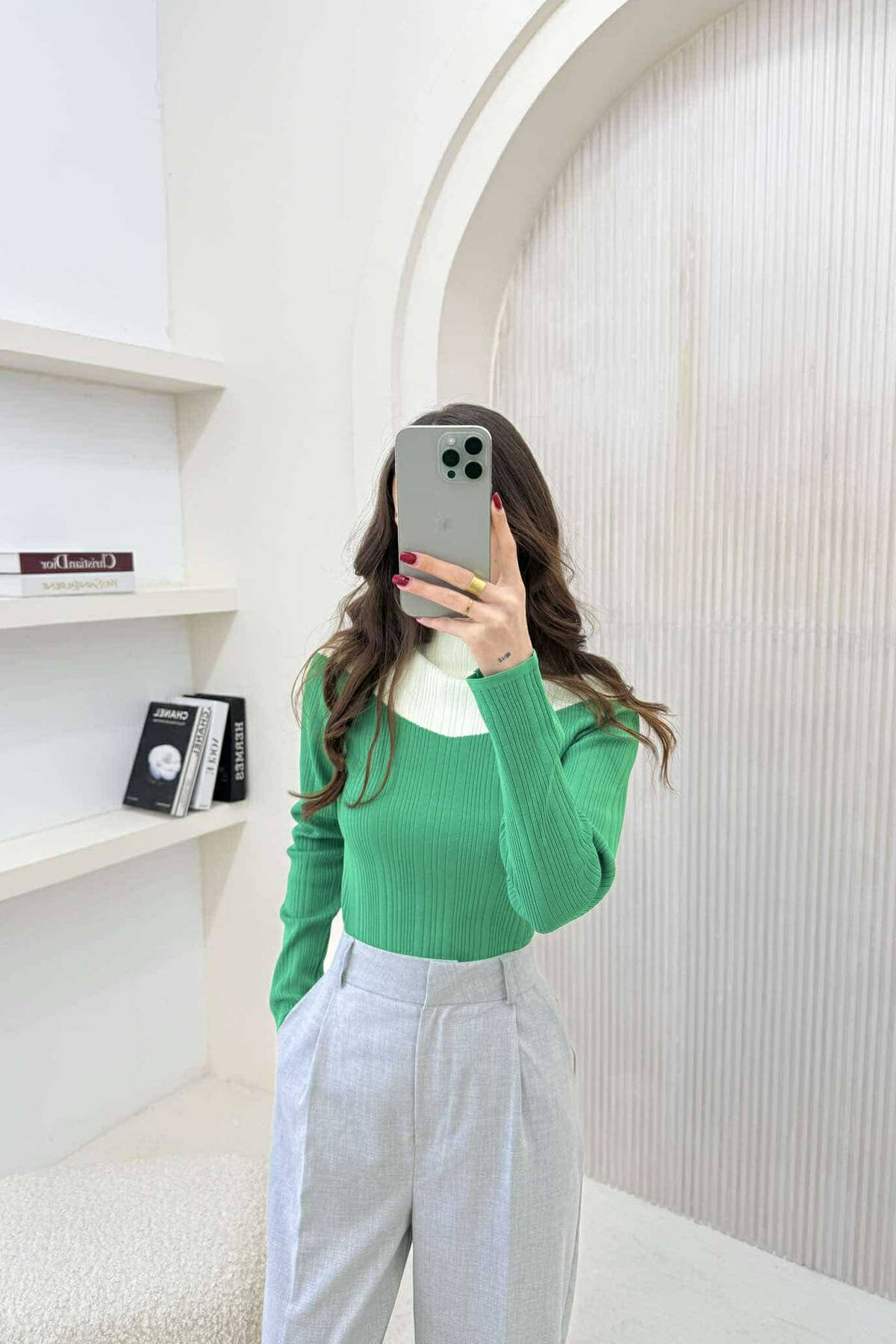 TRIKO ME DY NGJYRA DHE JAKË GJYSËM GOLF PËR FEMRA NË NGJYRËN JESHILE