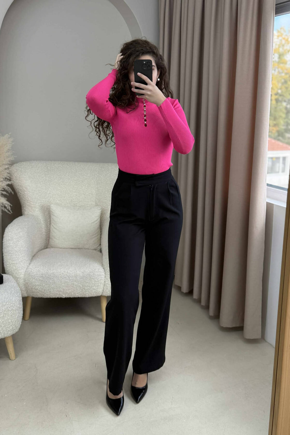 TRIKO ME JAKË GOLF DHE ME DETAJIN E GURËVE PËR FEMRA NË NGJYRË CIKLAMI