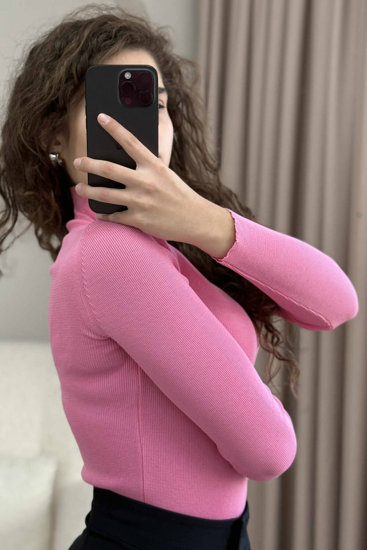 TRIKO ME JAKË GOLF DHE ME DETAJIN E GURËVE PËR FEMRA NË NGJYRË ROZË