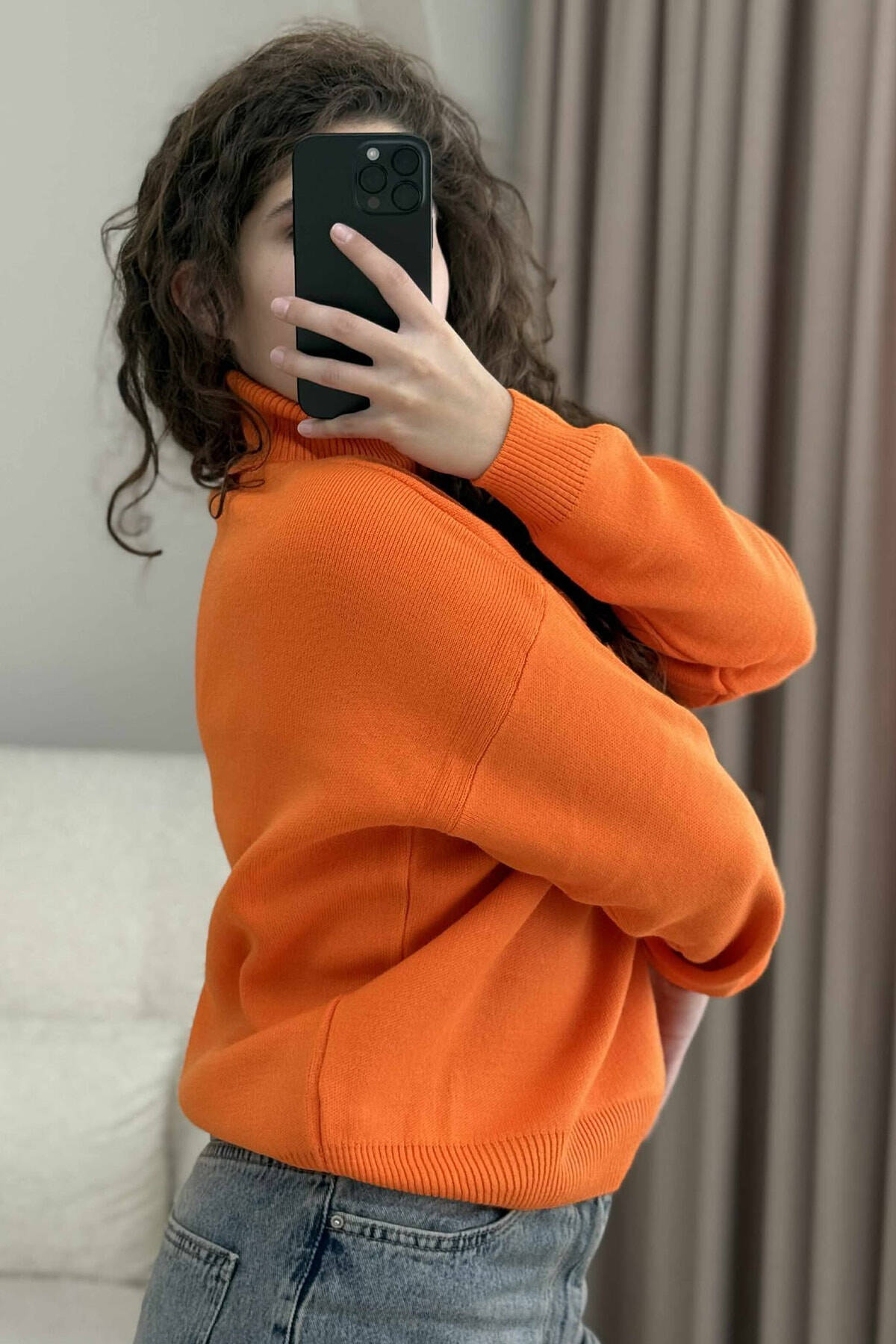 TRIKO ME JAKË GOLF DHE SHKRIME PARA PËR FEMRA NË NGJYRËN PORTOKALLI