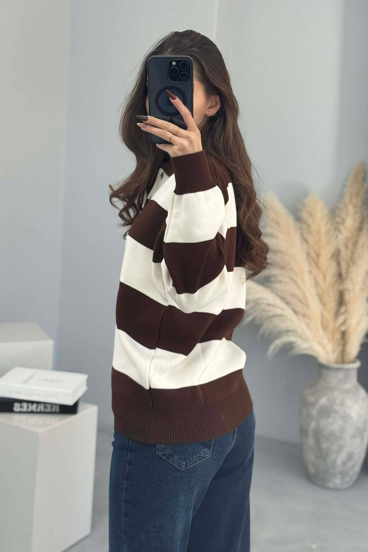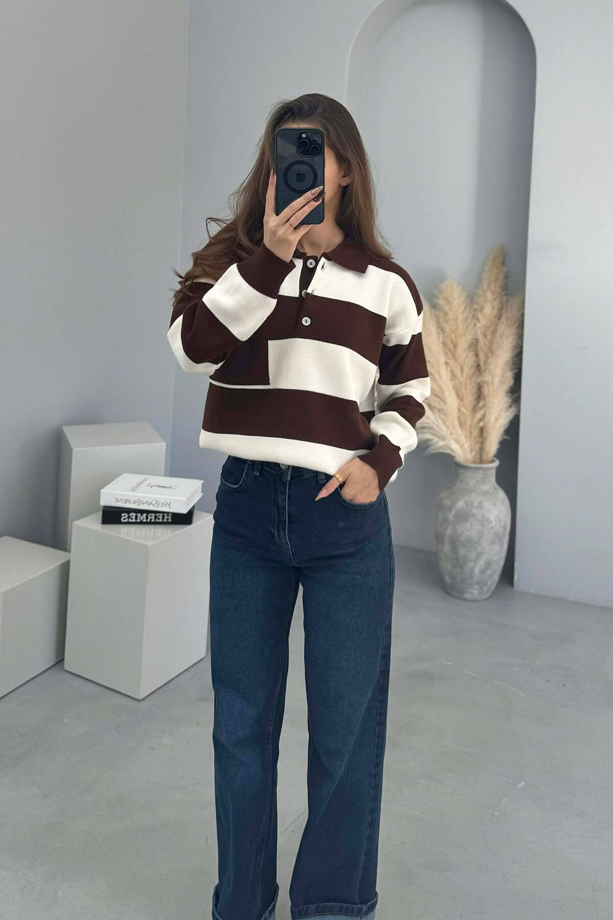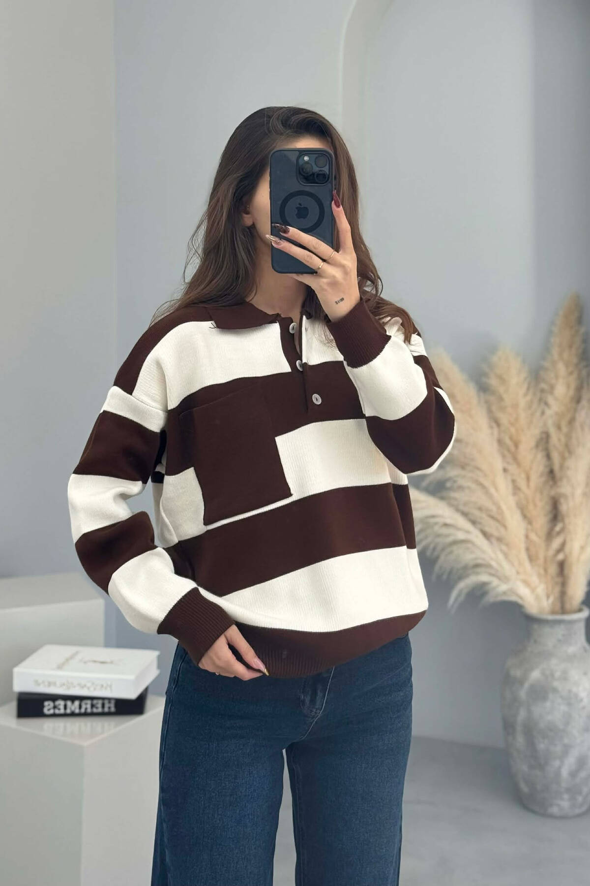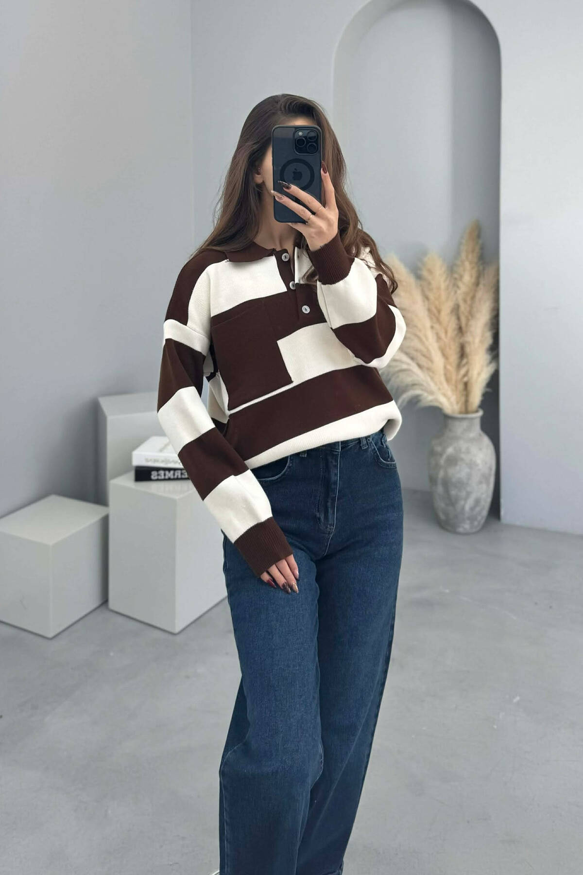 TRIKO ME JAKE POLO ME DETAJIN E XHEPIT DHE VIJA PER FEMRA NE NGJYRE KAFE