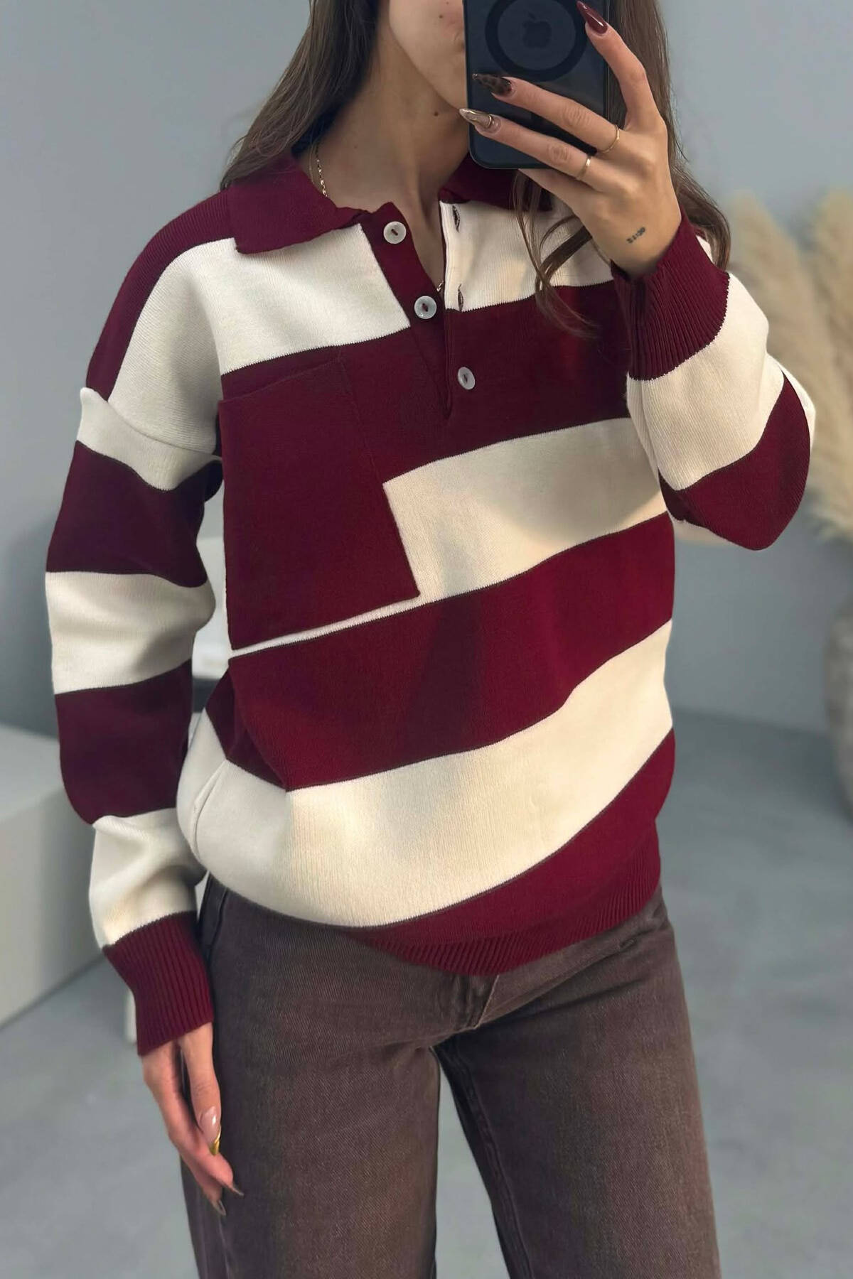 TRIKO ME VIJA DHE JAKE POLO ME BUTONA PER FEMRA NE NGJYRE VISHNJE ME BLU