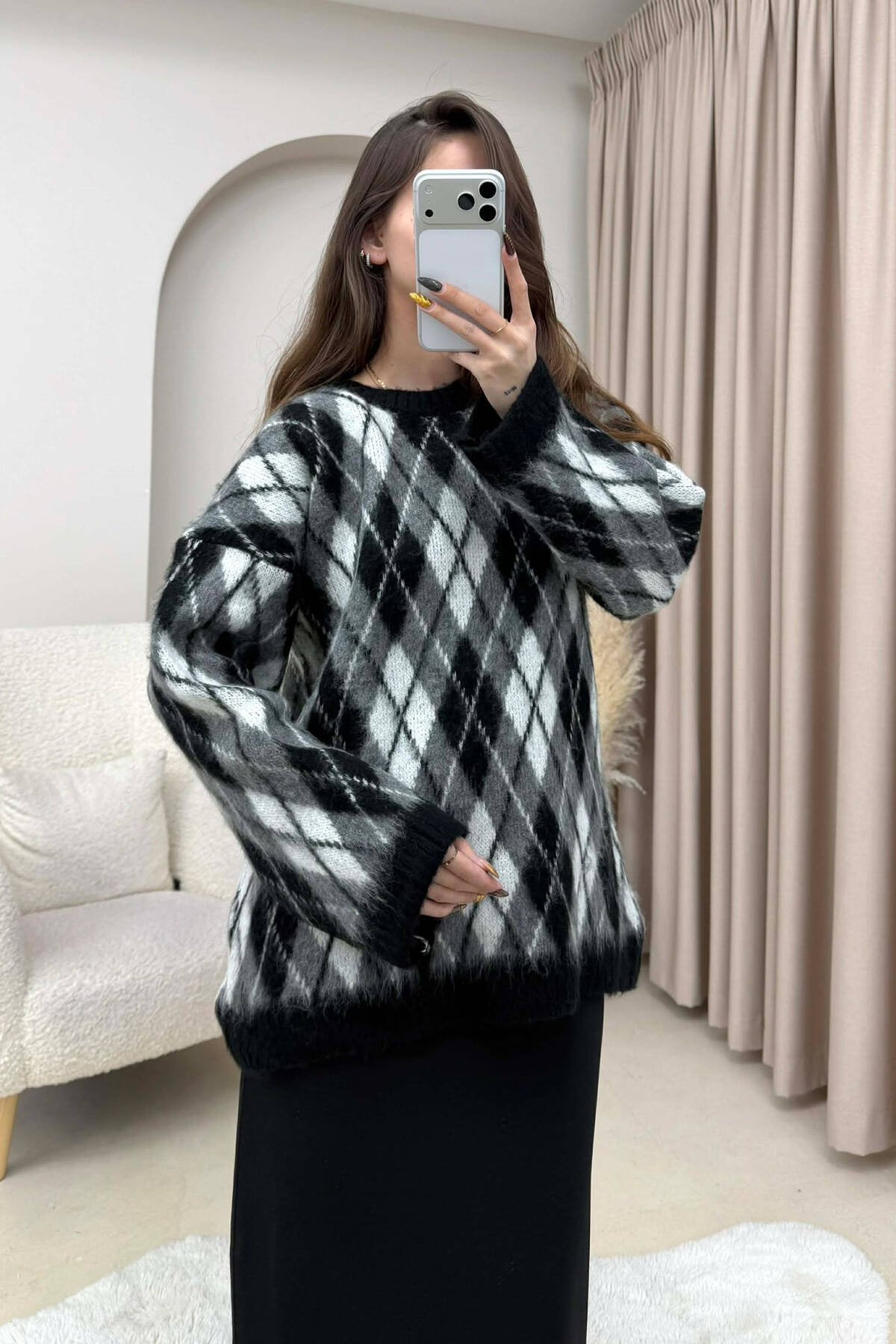 TRIKO ME JAKE TE RRUMBULLAKET DHE ME DIZAJN ROMBESH PER FEMRA NE NGJYRE TE ZEZE