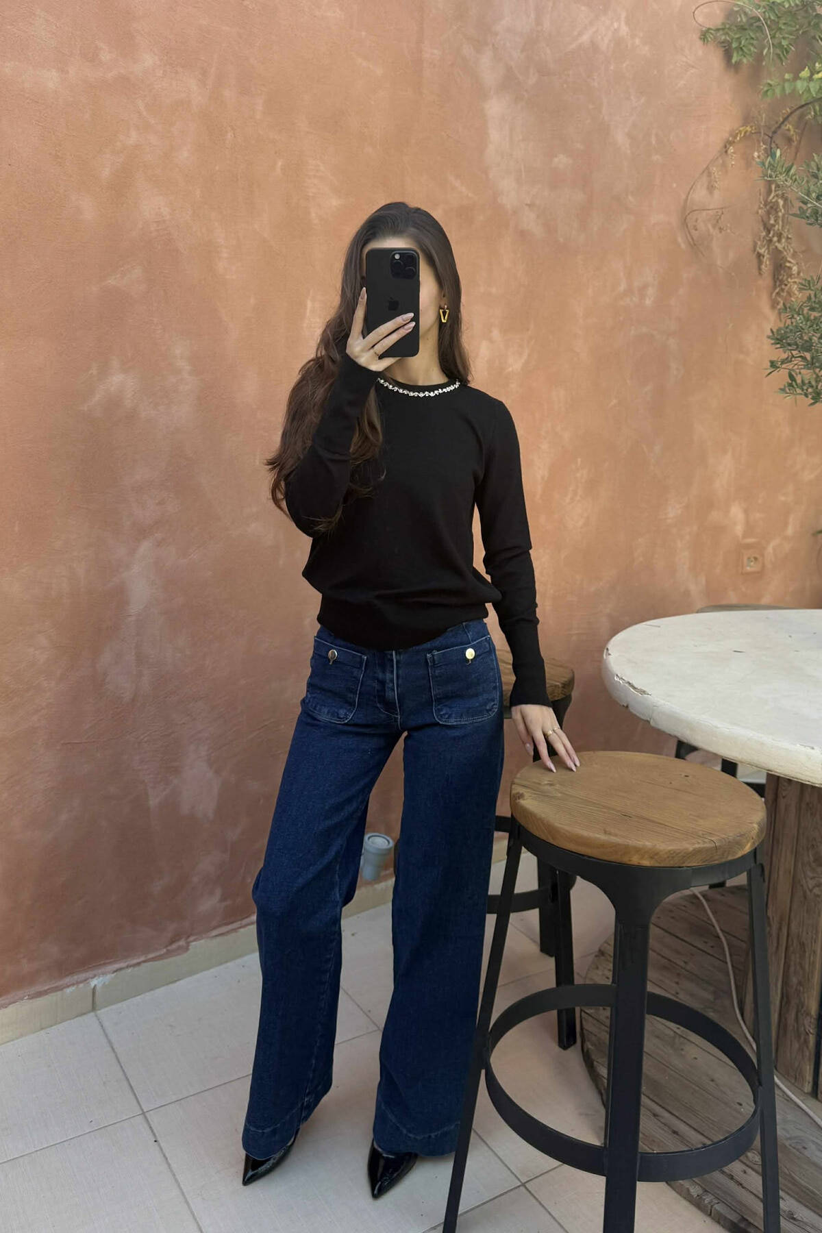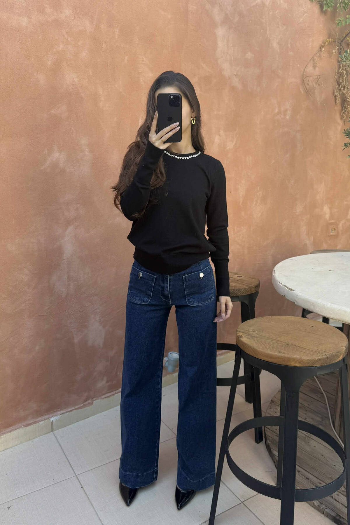 TRIKO ME JAKË TË RRUMBULLAKET ME DETAJE GURËSH ME SHKËLQIM PËR FEMRA NË NGJYRËN E ZEZË