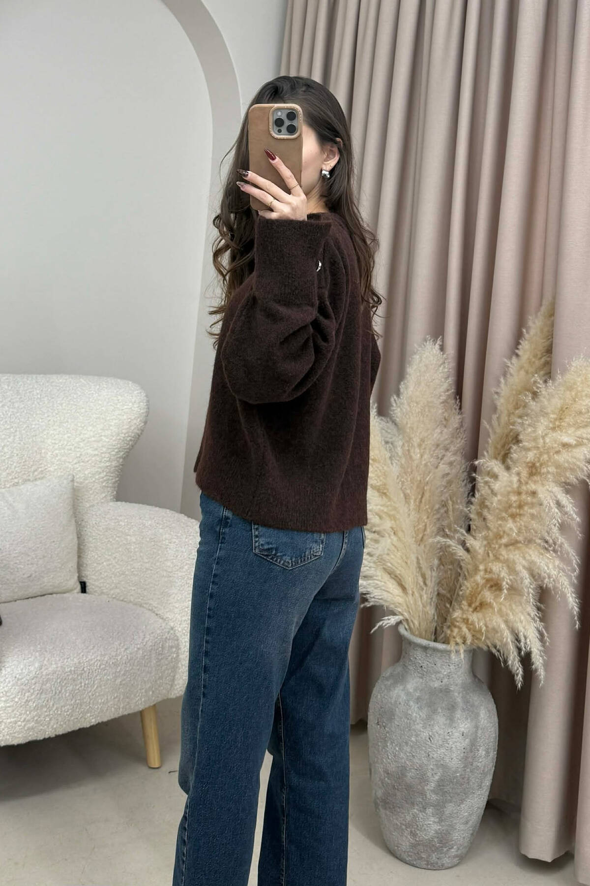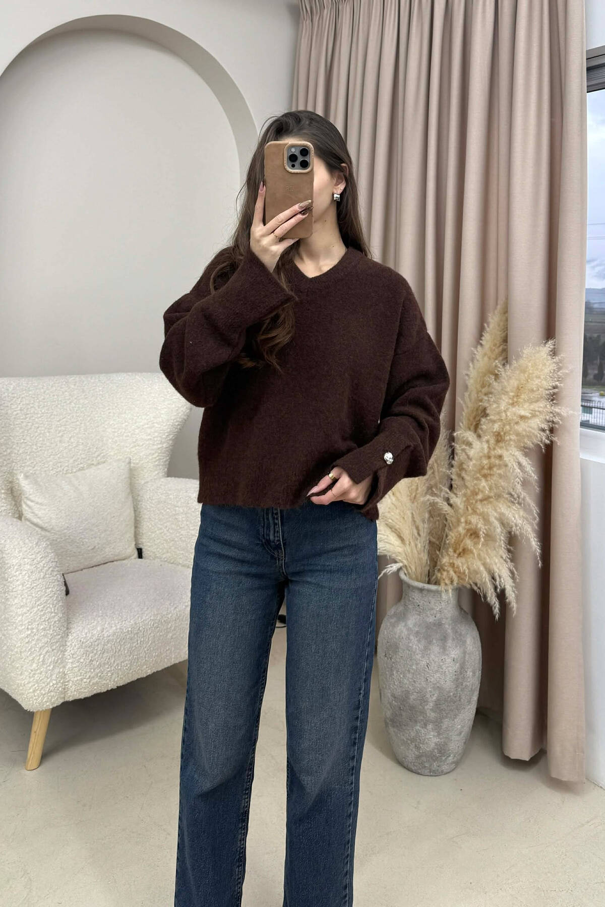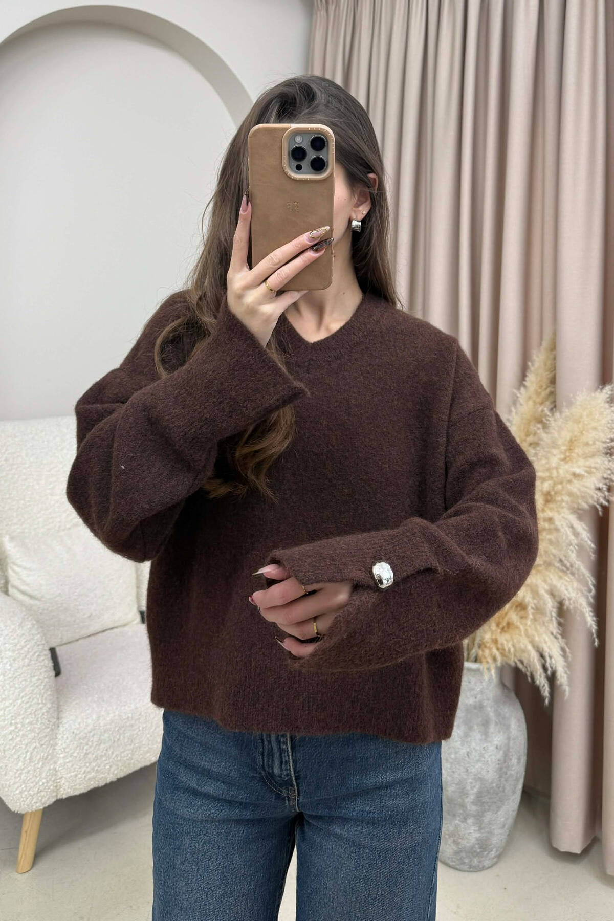 TRIKO ME JAKE V DHE ME BUTONA TEK MENGET PER FEMRA NE NGJYRE KAFE TE ERRET