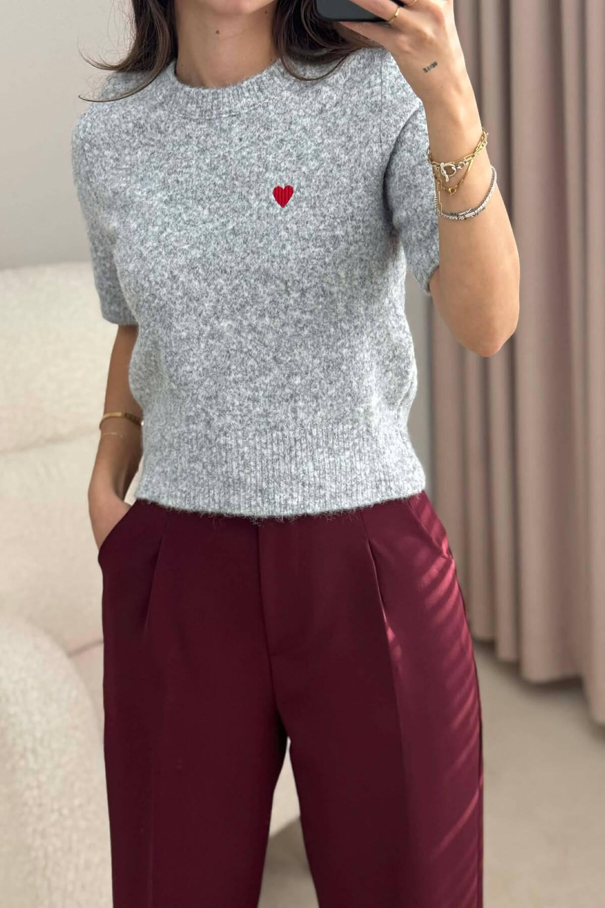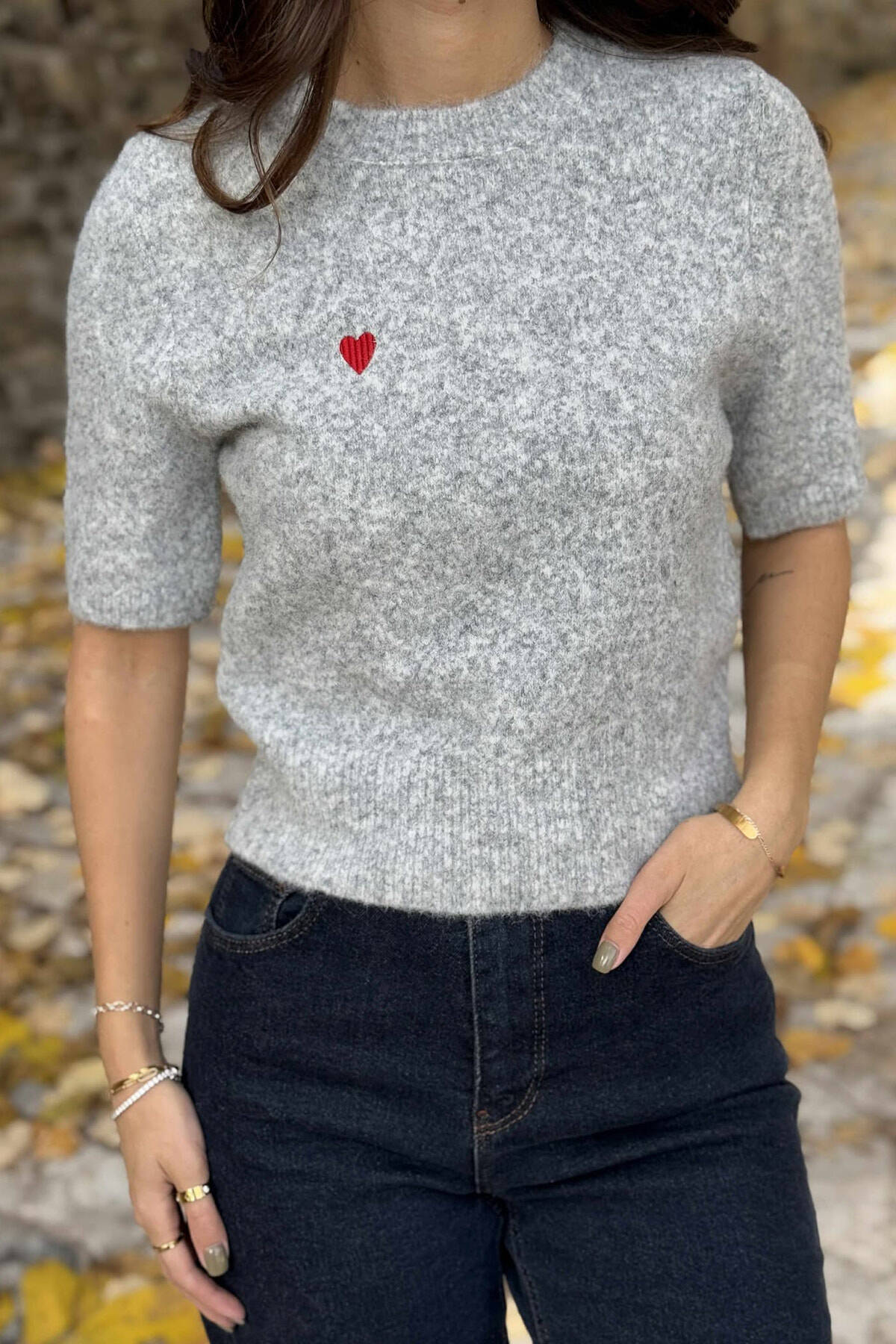 TRIKO ME LOGO ME ZEMËR DHE ME MËNGË TË SHKURTRA PËR FEMRA NË NGJYRË GRI