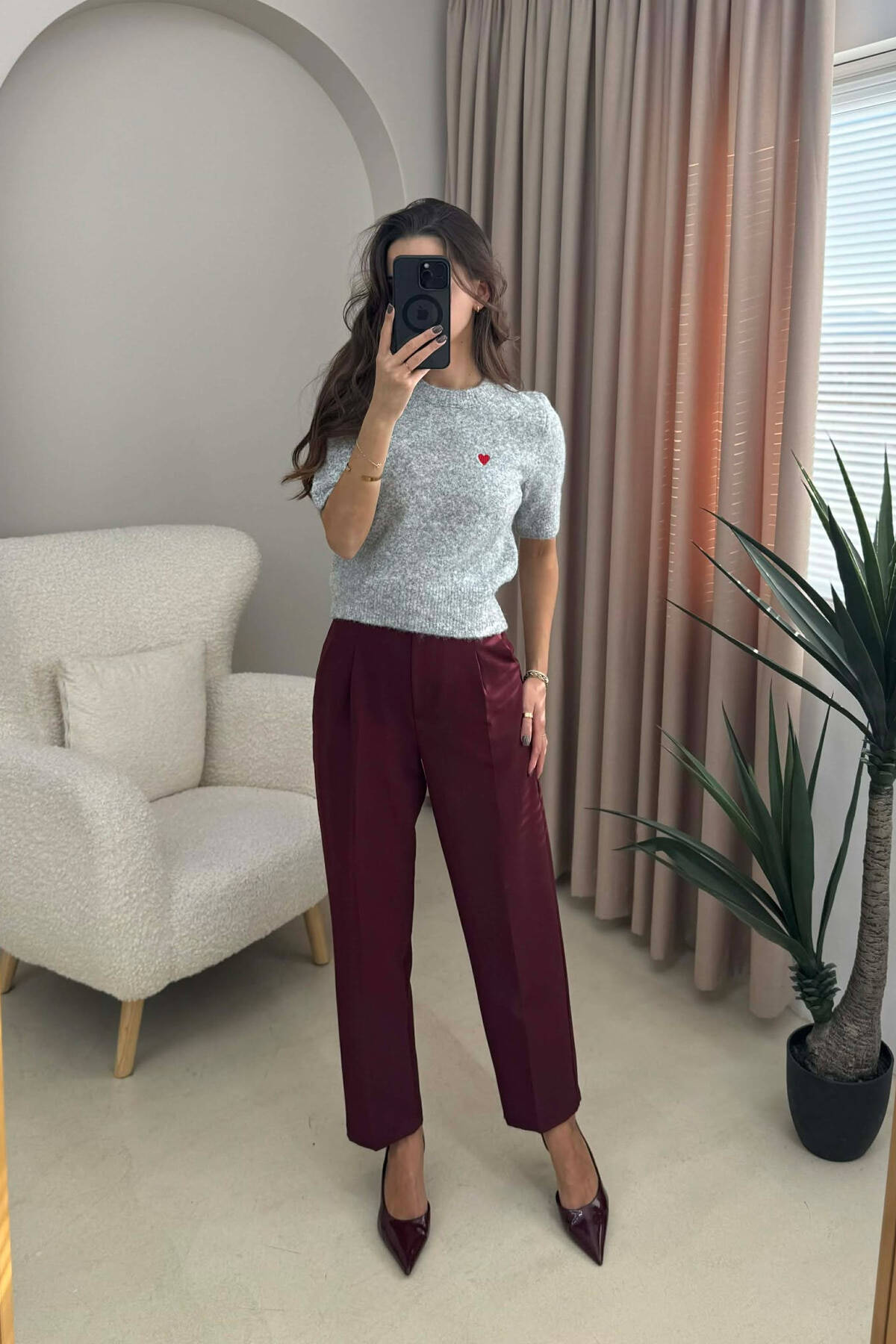 TRIKO ME DIZAJN ROMBESH PËR FEMRA NË NGJYRË GRI ME VISHNJË
