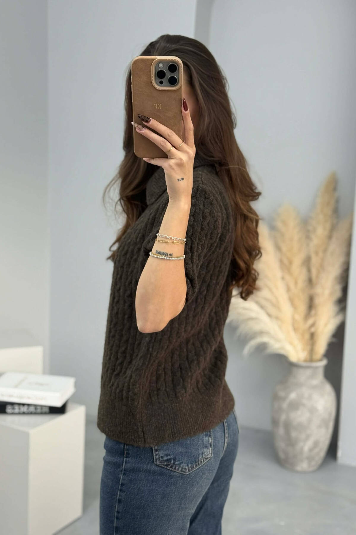 TRIKO ME MENGE TE SHKURTRA DHE ME DETAJIN E SHALLIT PER FEMRA NE NGJYRE KAFE TE ERRET