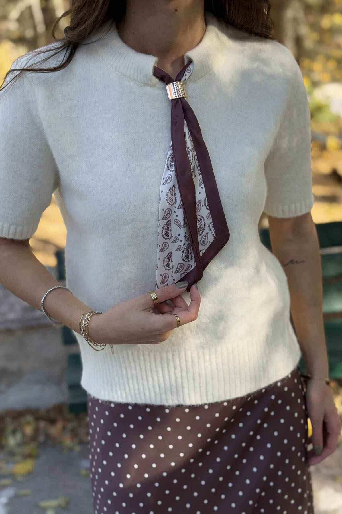 TRIKO ME MËNGË TË SHKURTRA DHE ME DETAJIN E SHALLIT PËR FEMRA NË NGJYRË KREM