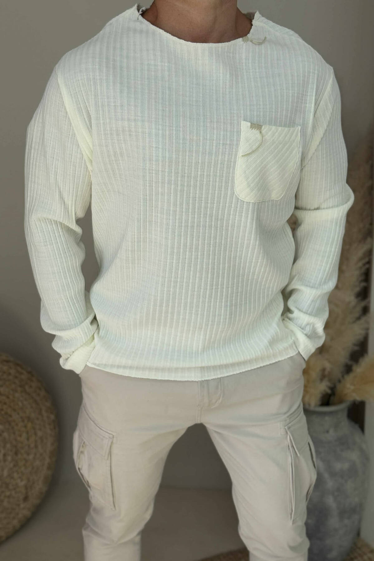 POCKET DETAIL ONE COLOR MEN SWEATER WHITE-E BARDHE