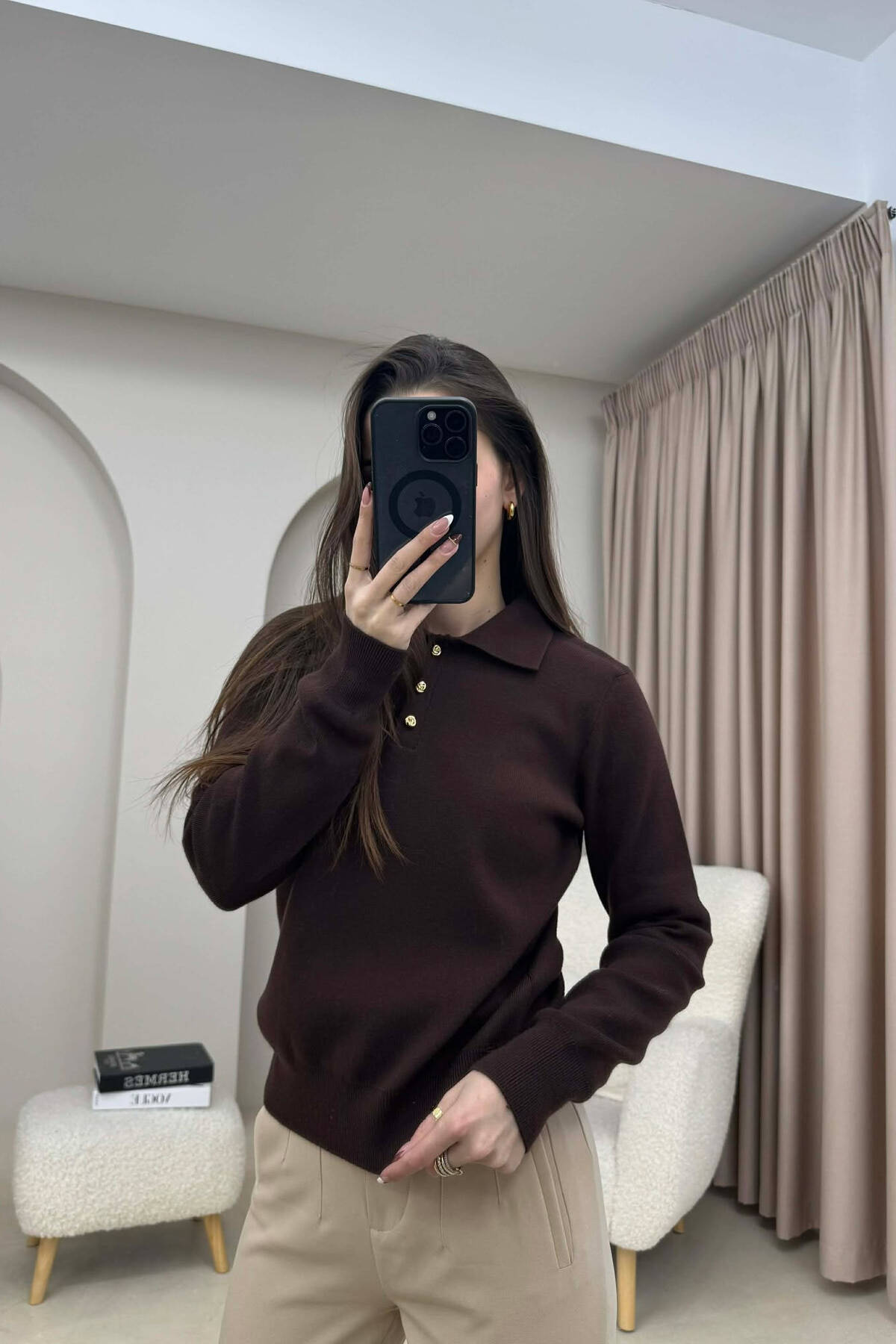 TRIKO ME THURRJE DHE JAKE POLO PER FEMRA NE NGJYRE KAFE