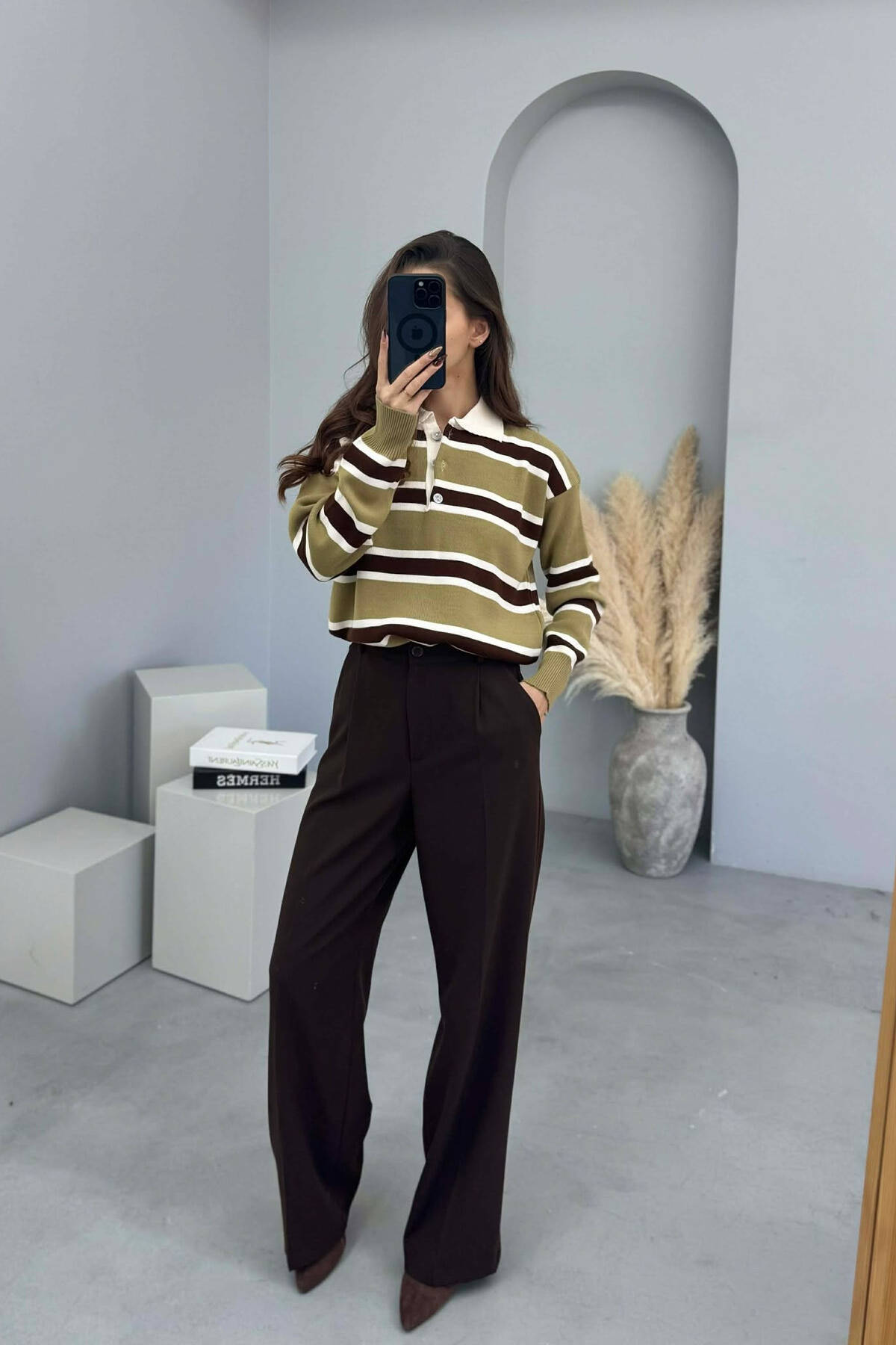 TRIKO ME VIJA DHE JAKE POLO ME BUTONA PER FEMRA NE NGJYRE JESHILE ME KAFE