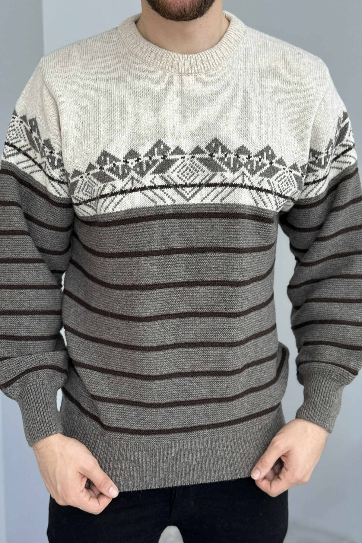 TRIKO ME VIJA DHE JAKE TE RRUMBULLAKET PER MESHKUJ NE NGJYRE BEZHE