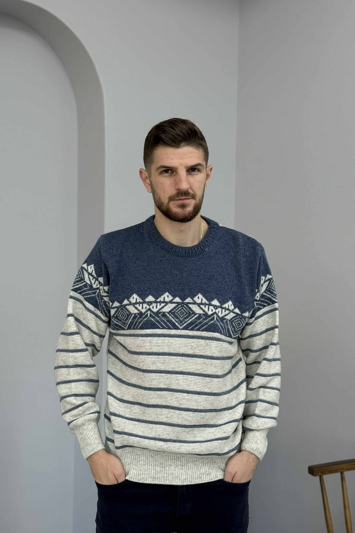 PULOVËR ME JAKË POLO DHE ME DETAJIN E ZINXHIRIT PËR MESHKUJ NË NGJYRËN BLU