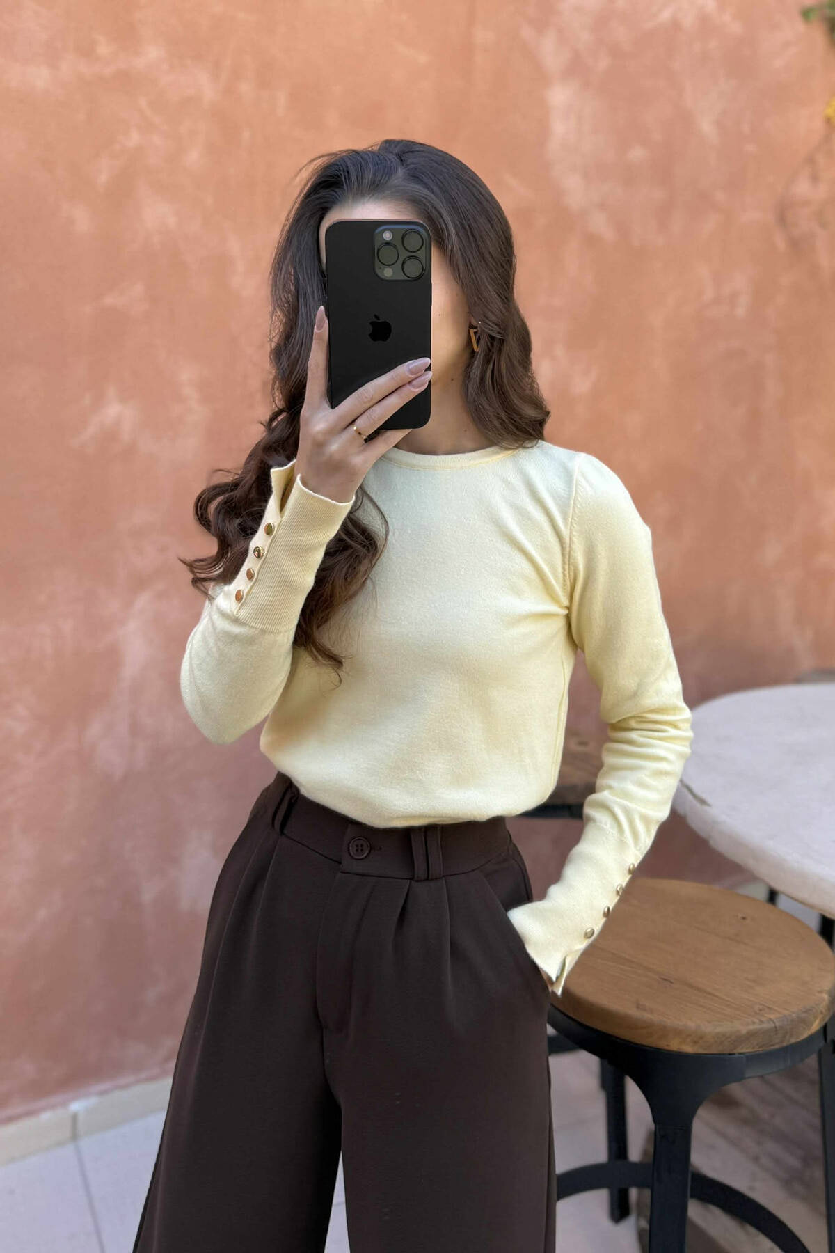 TRIKO NJË NGJYRËSHE ME DETAJE GOLD PËR FEMRA NË NGJYRËN E VERDHË