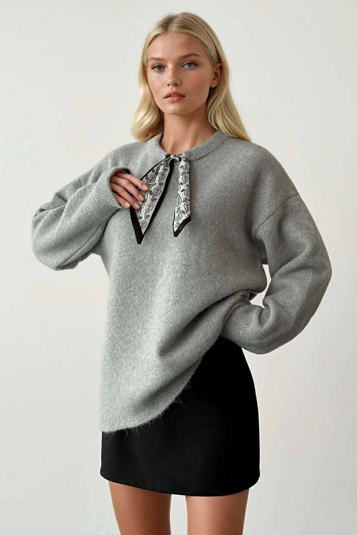 TRIKO NJE NGJYRESHE ME DETAJIN E SHALLIT PER FEMRA NE NGJYRE GRI