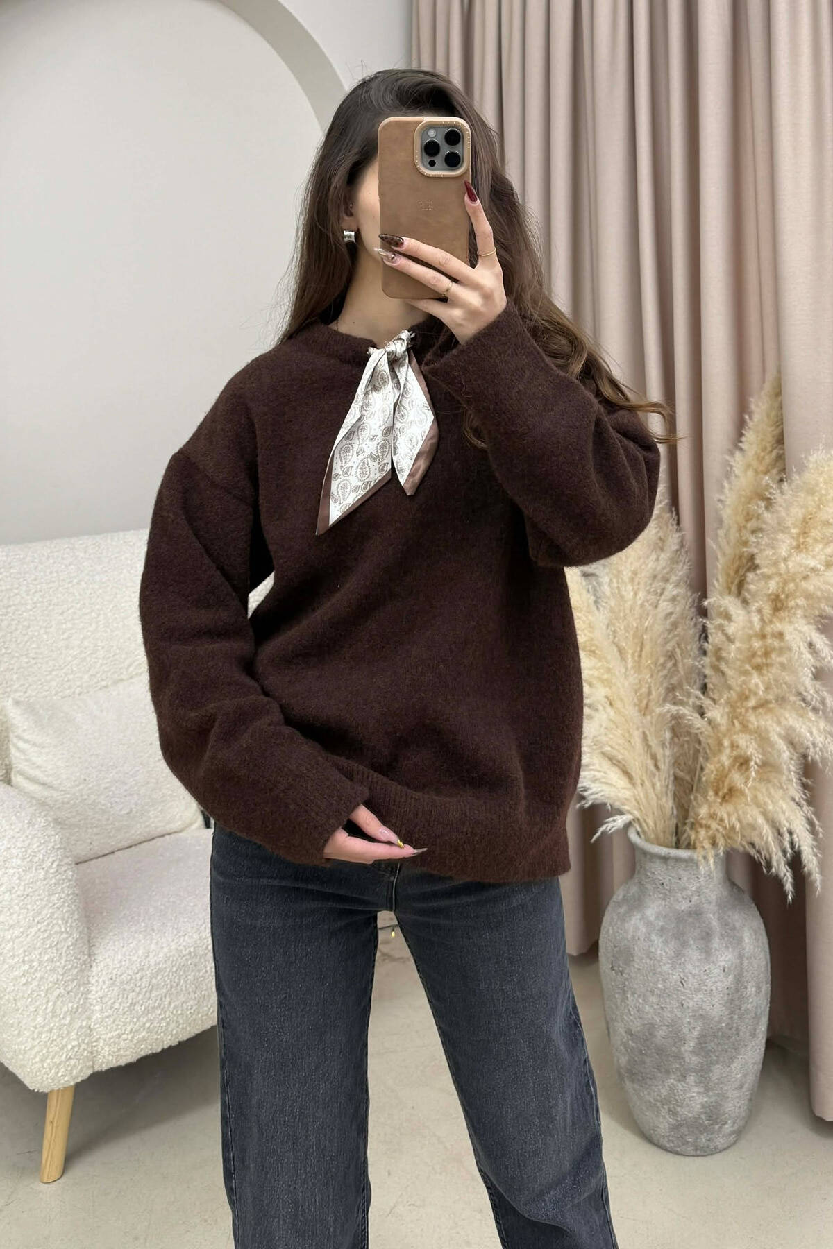 TRIKO NJE NGJYRESHE ME DETAJIN E SHALLIT PER FEMRA NE NGJYRE KAFE