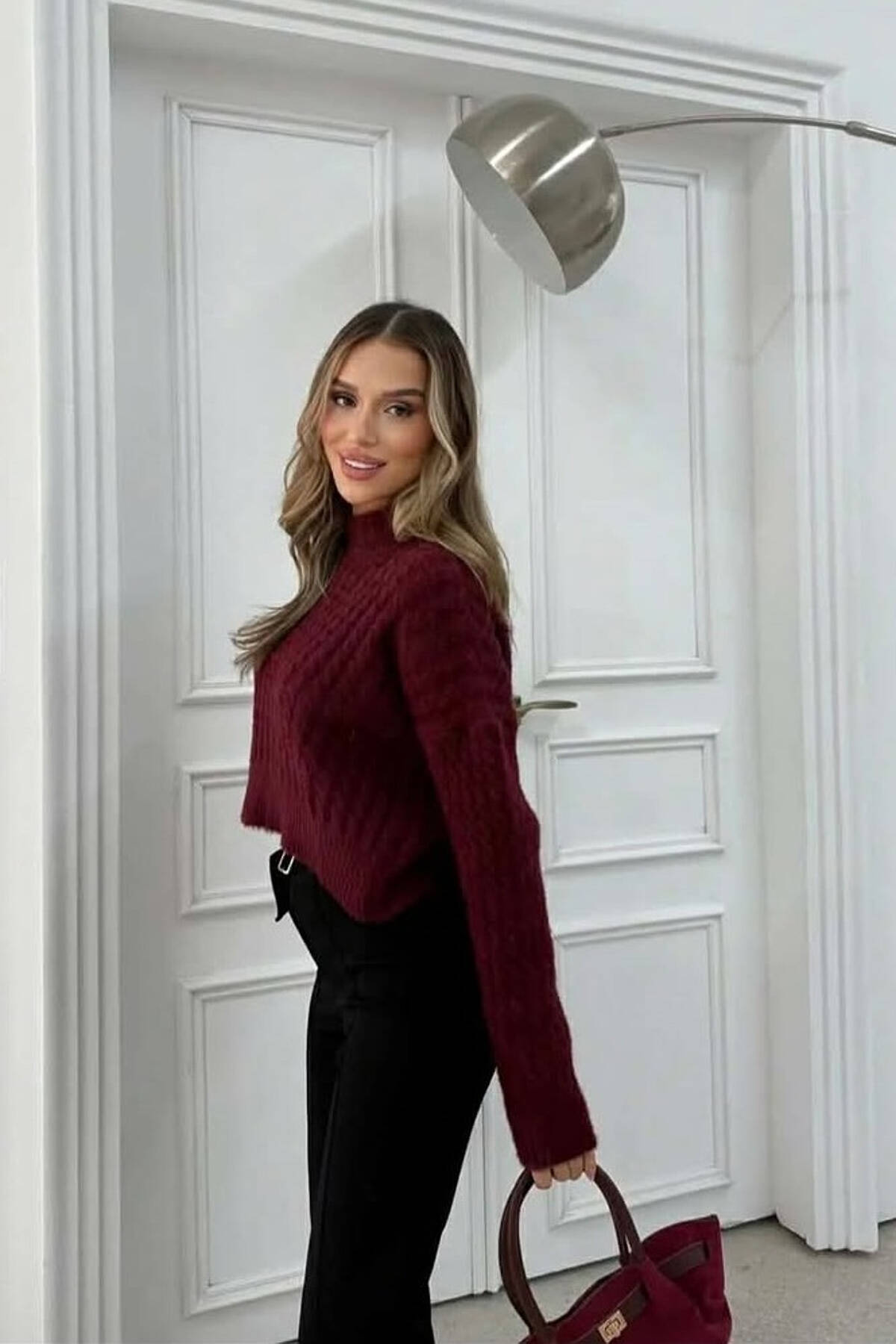 TRIKO NJE NGJYRESHE ME JAKE GJYSEM GOLF PER FEMRA NE NGJYRE VISHNJE