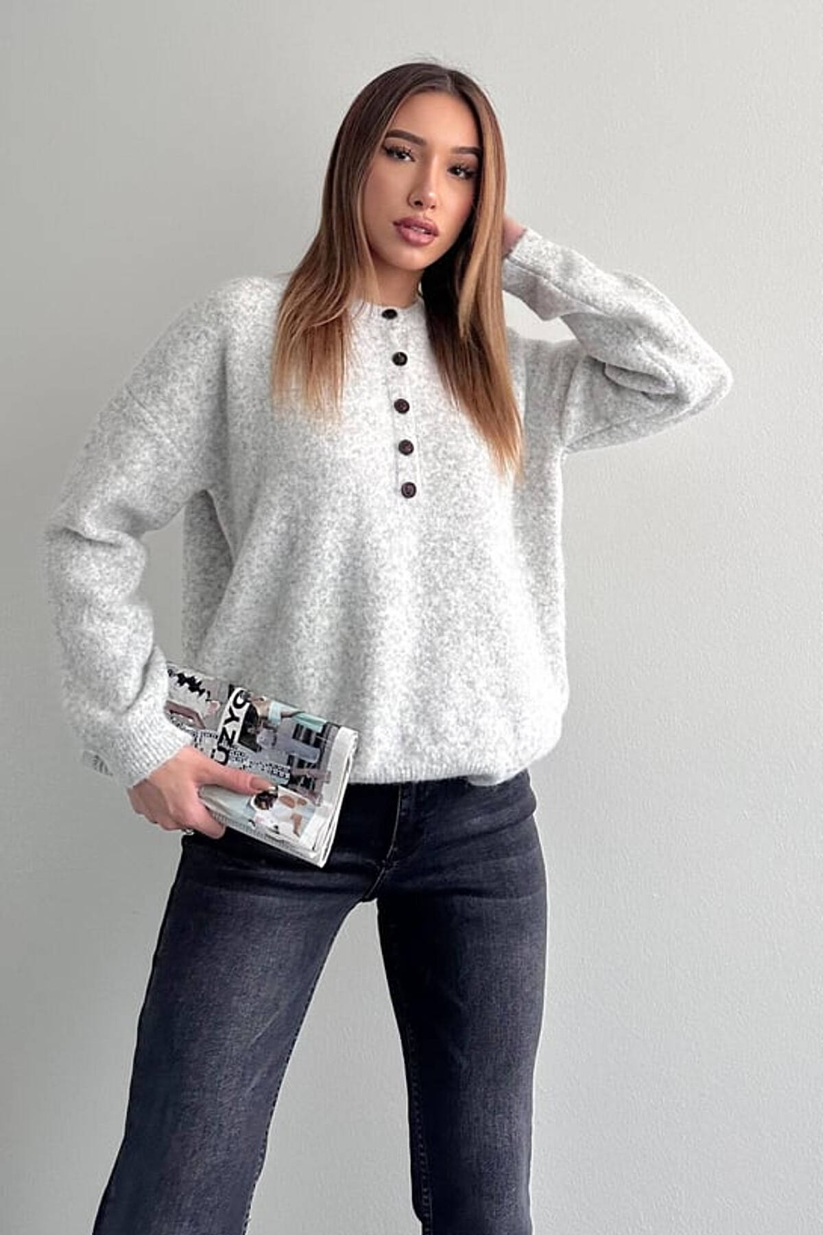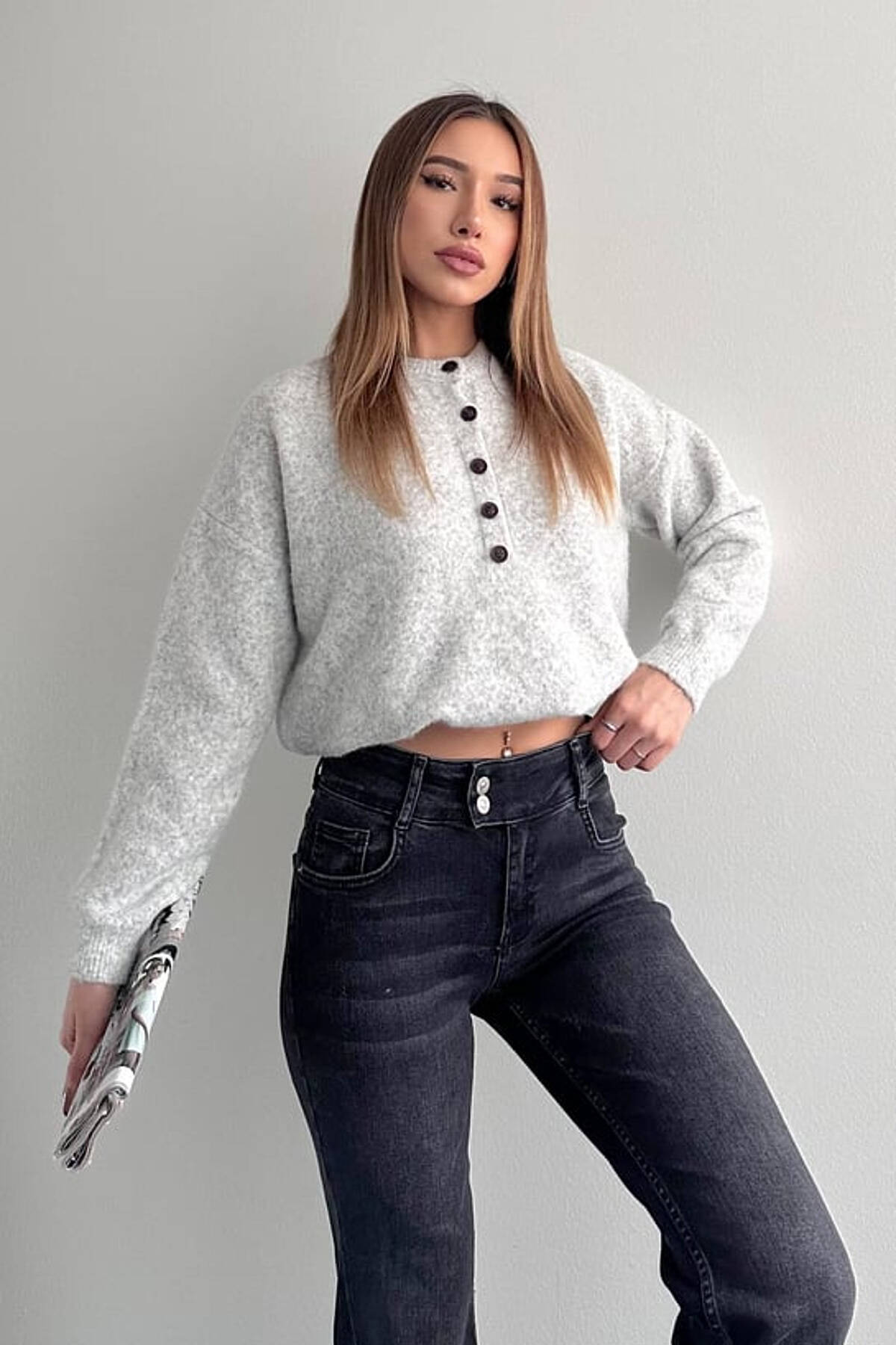 TRIKO NJË NGJYRËSHE ME JAKË ME BUTONA PËR FEMRA NË NGJYRË GRI TË ZBARDHUR