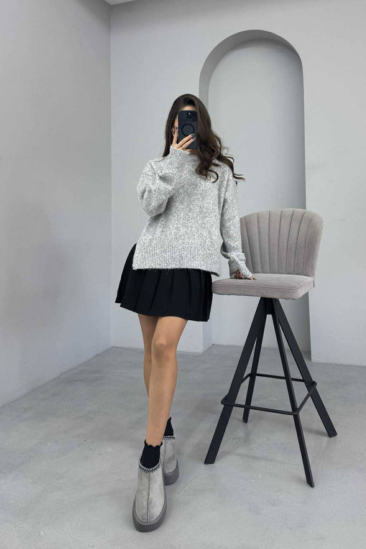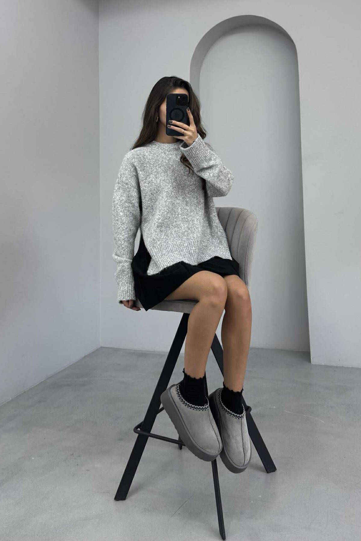 TRIKO NJË NGJYRËSHE ME JAKË TË RRUMBULLAKËT PËR FEMRA NË NGJYRË GRI