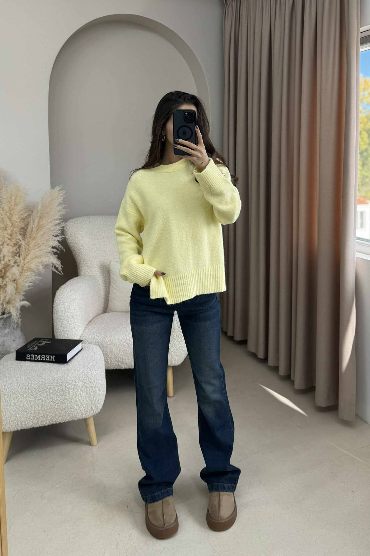 TRIKO NJË NGJYRËSHE ME JAKË TË RRUMBULLAKËT PËR FEMRA NË NGJYRË TË VERDHË