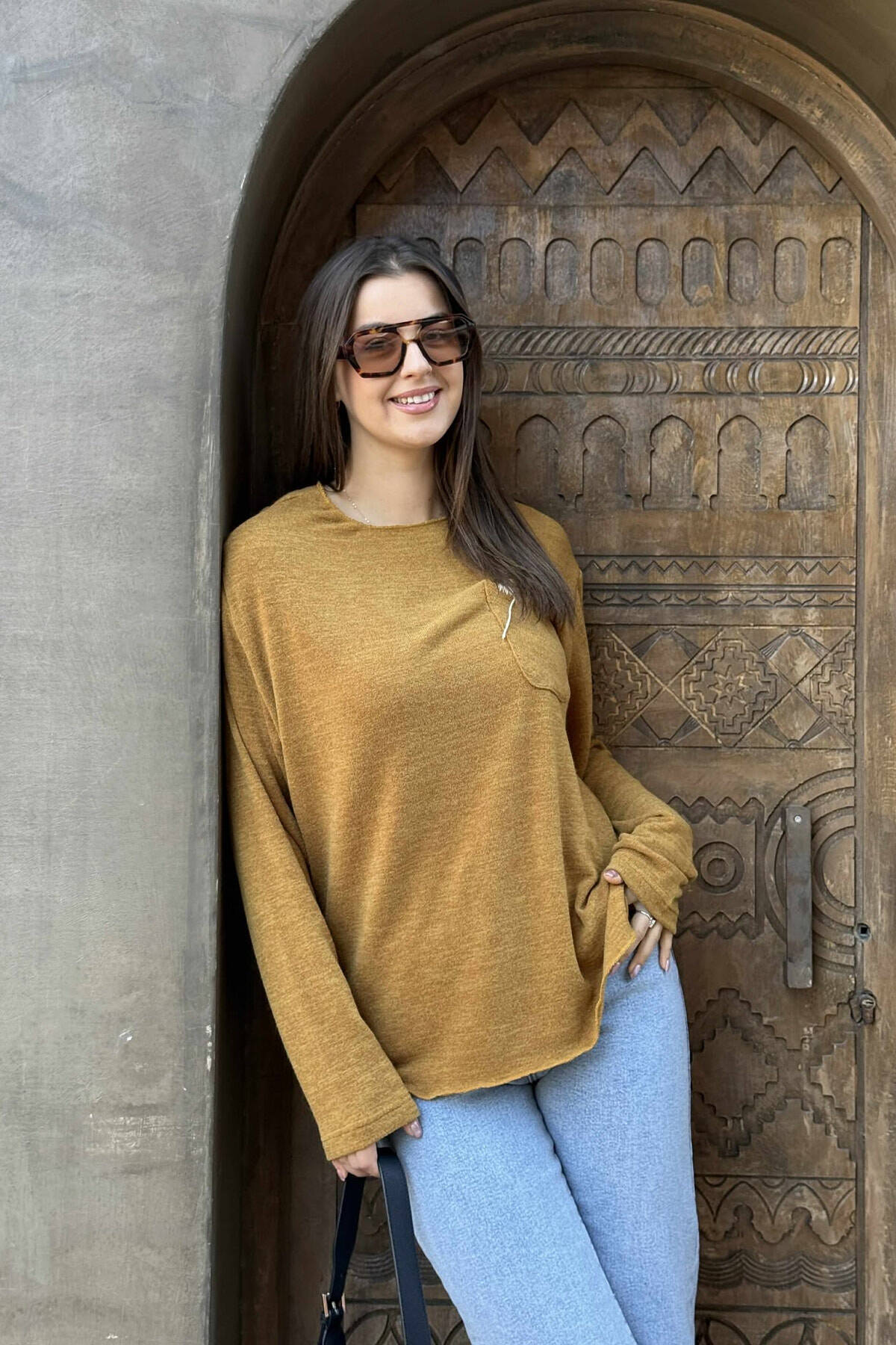 TRIKO NJËNGJYRËSHE ME DETAJIN E XHEPIT PËR FEMRA NË NGJYRËN MUSTARDË