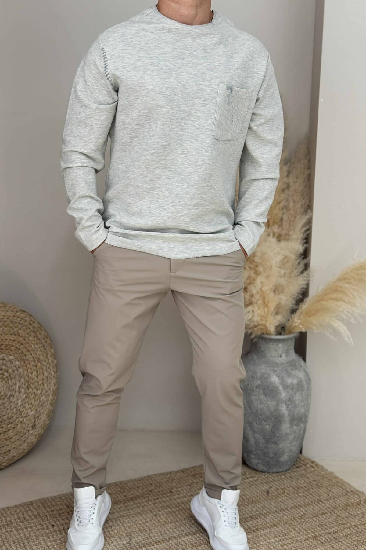 TRIKO NJËNGJYRËSHE ME DETAJIN E XHEPIT PËR MESHKUJ NË NGJYRËN GRI TË ZBARDHUR