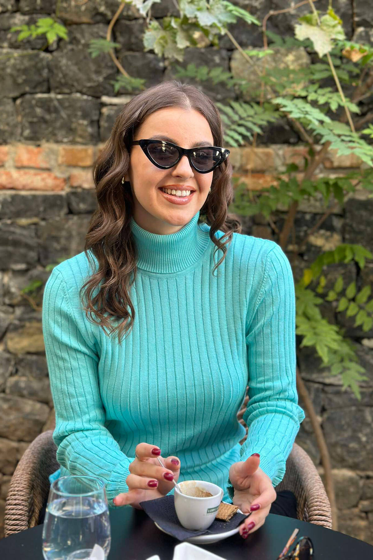 Triko Një Ngjyrëshe Me Jakë Gjysëm Golf Për Femra Në Ngjyrë Baby Blu