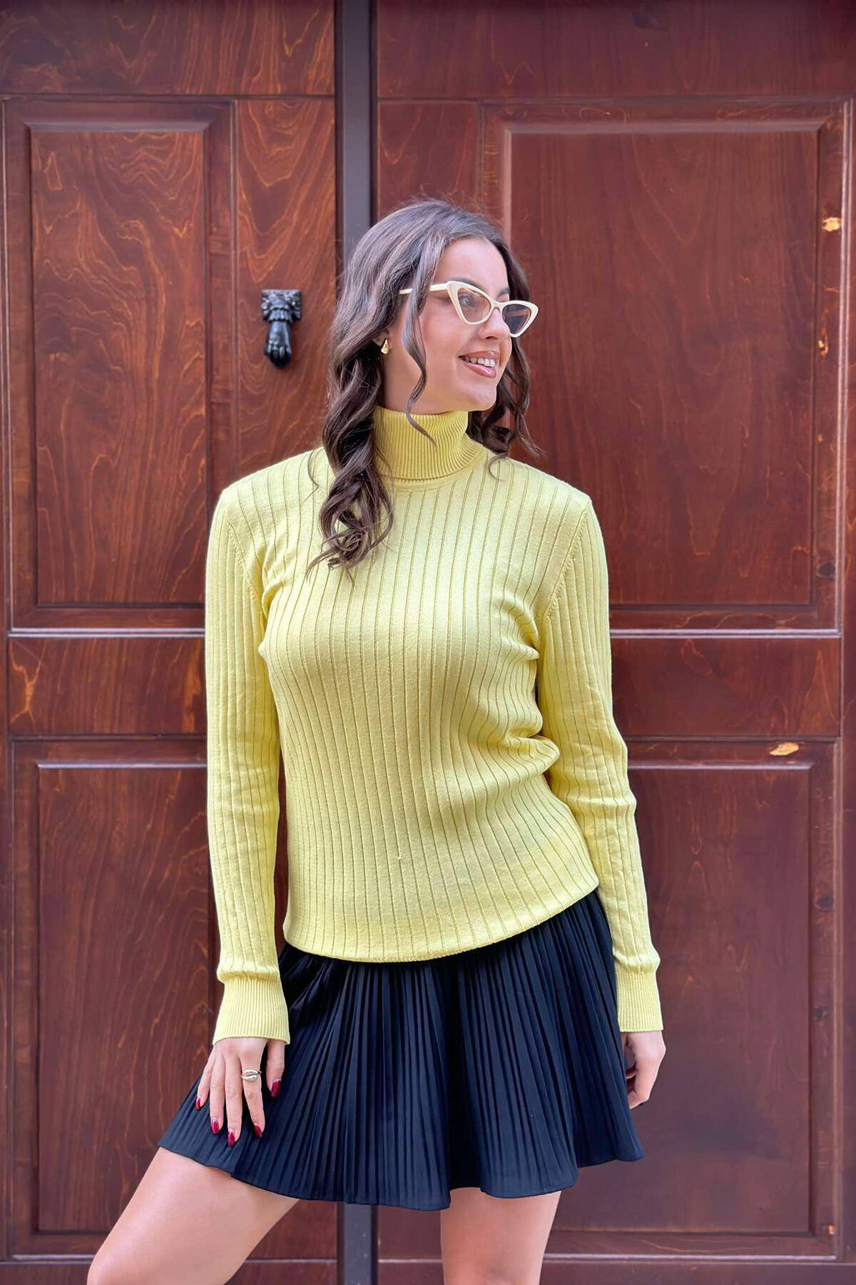 Triko Një Ngjyrëshe Me Jakë Gjysëm Golf Për Femra Në Ngjyrën E Verdhë
