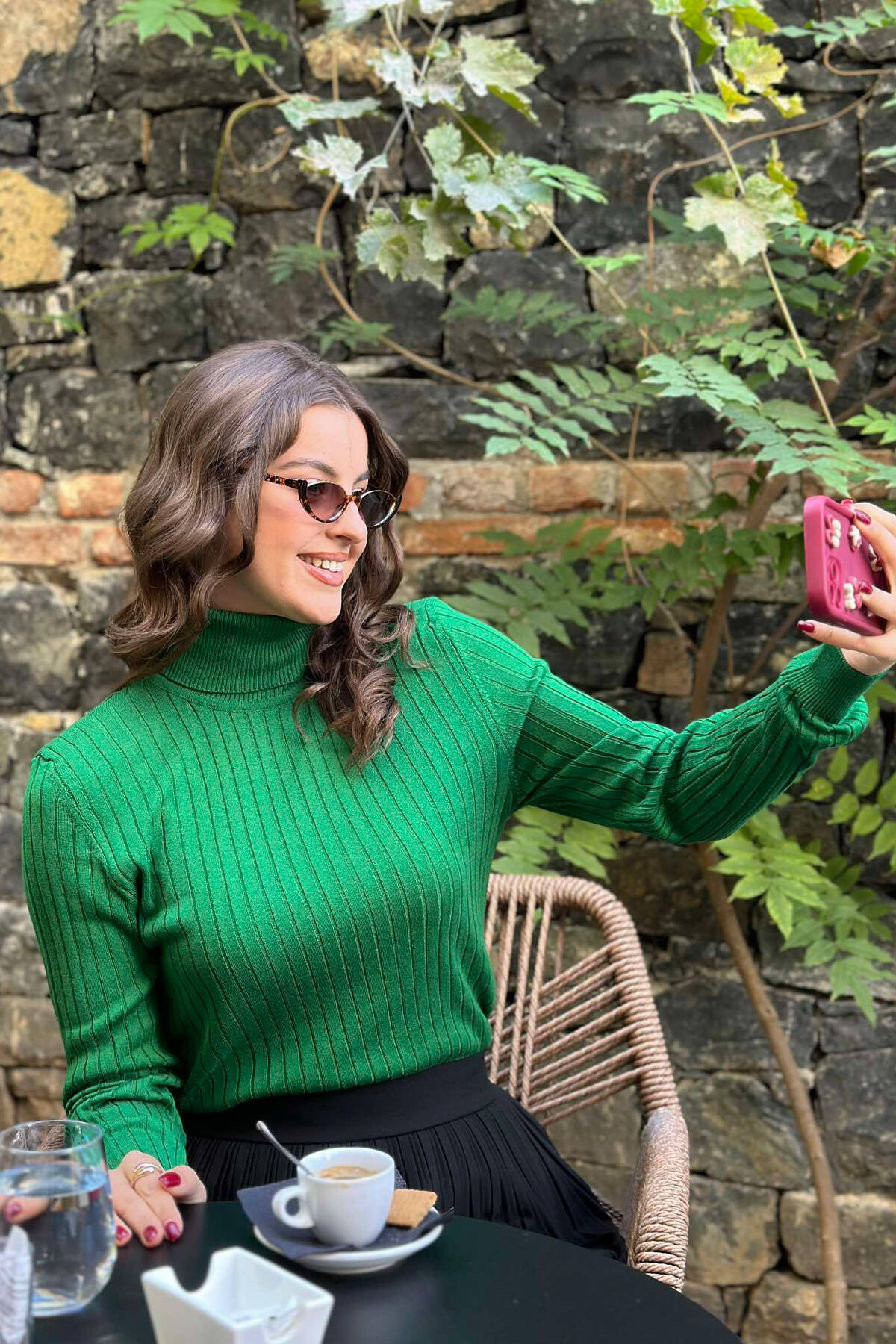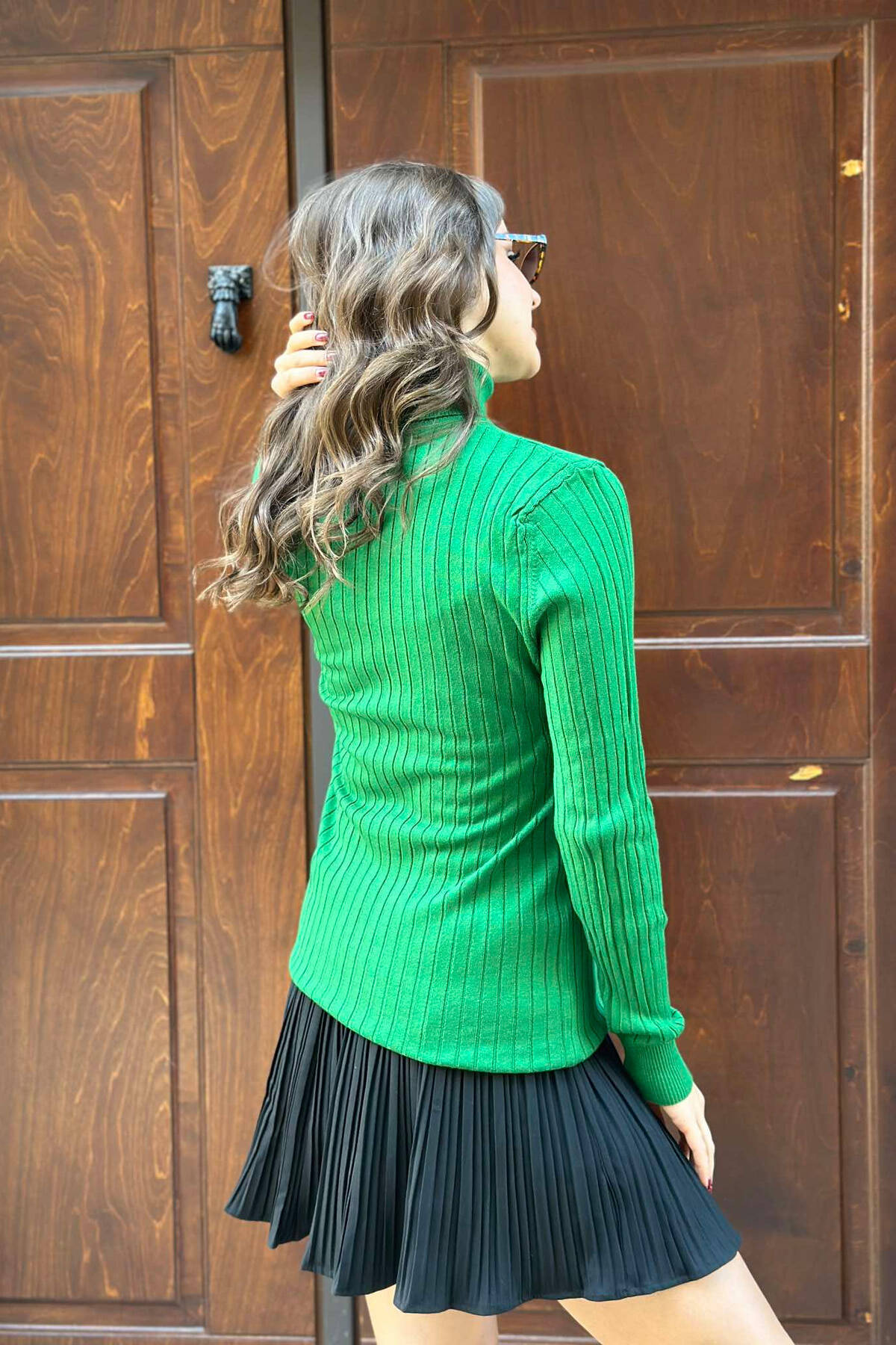 Triko Një Ngjyrëshe Me Jakë Gjysëm Golf Për Femra Në Ngjyrën Jeshile
