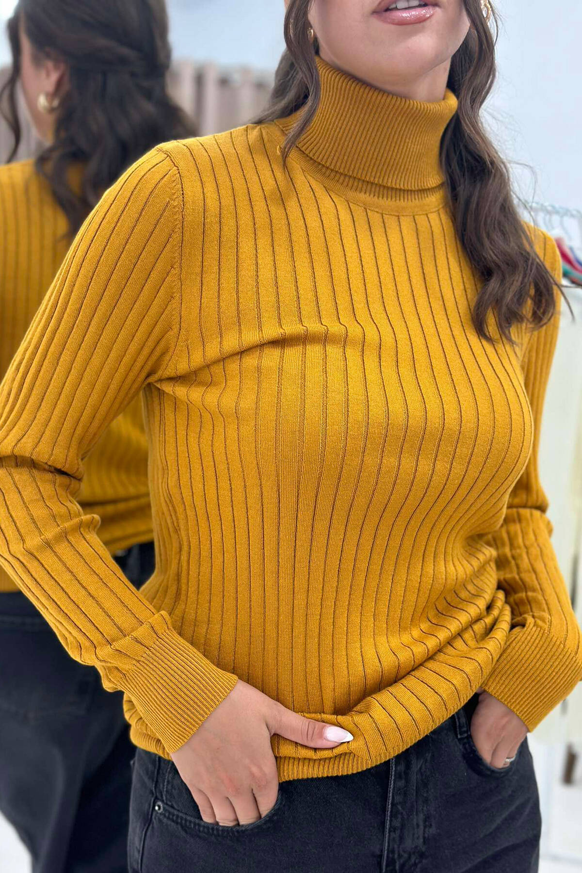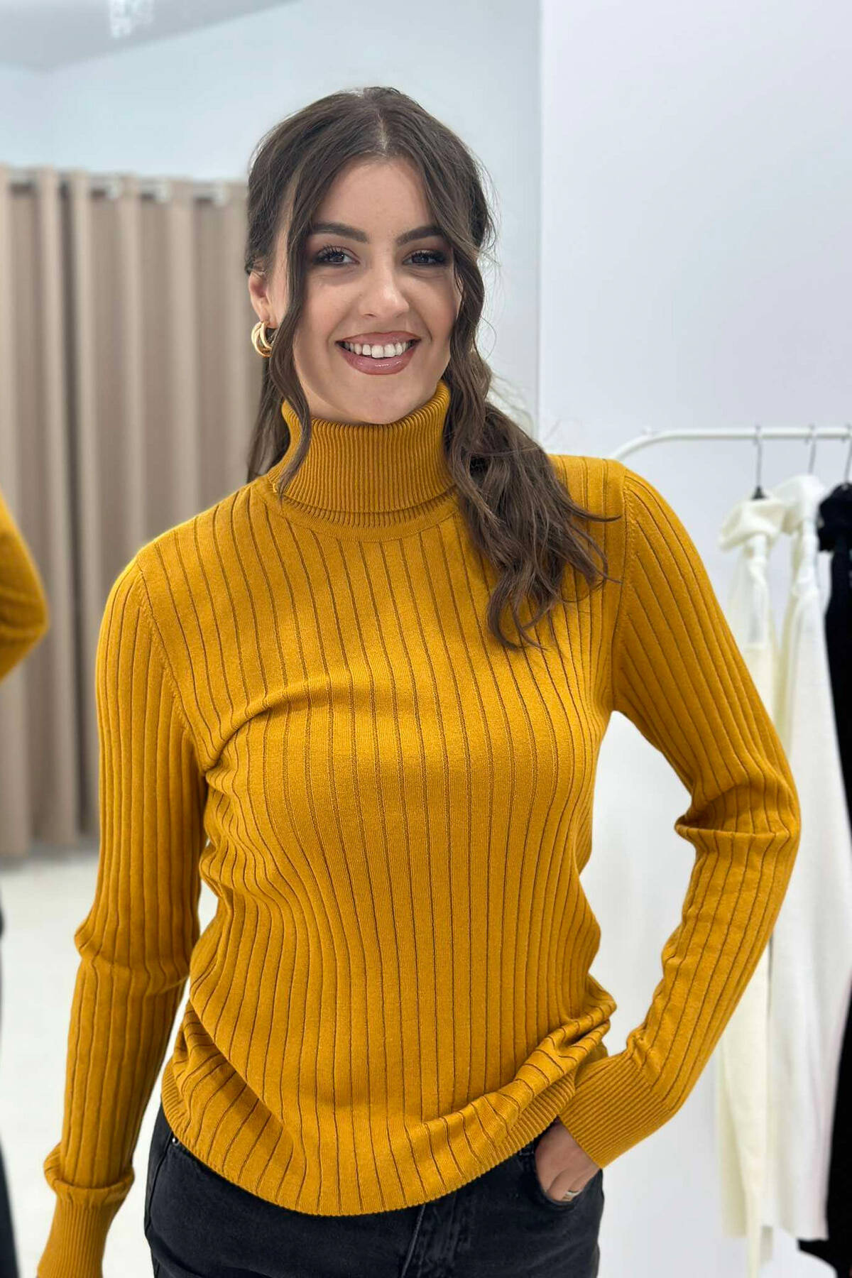 Triko Një Ngjyrëshe Me Jakë Gjysëm Golf Për Femra Në Ngjyrë Mustardë