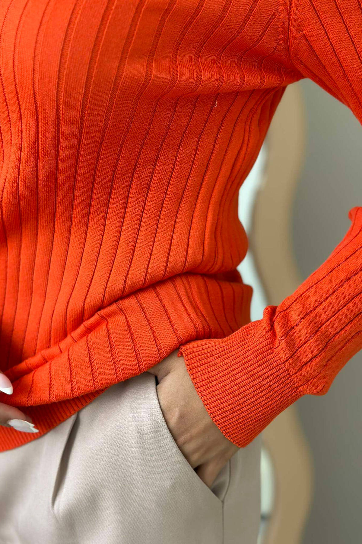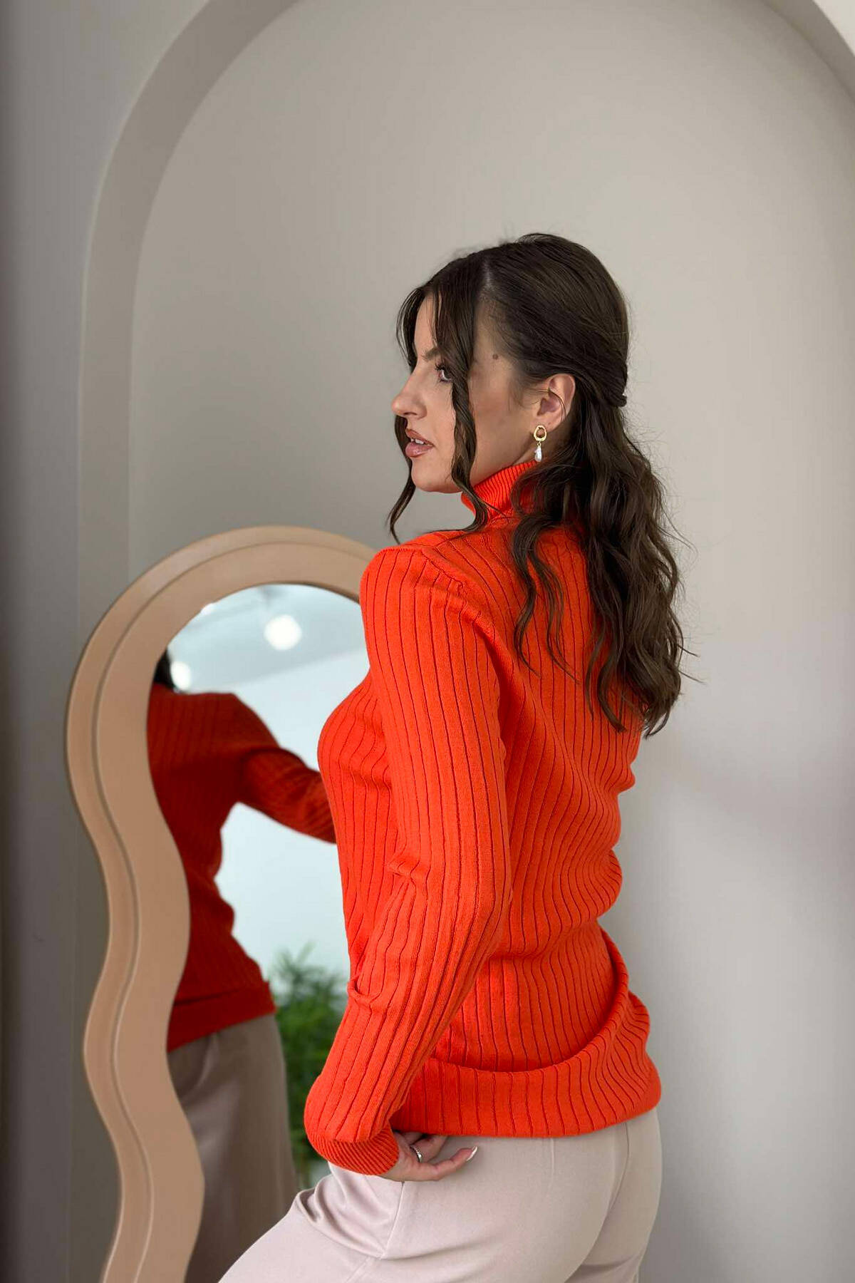 Triko Një Ngjyrëshe Me Jakë Gjysëm Golf Për Femra Në Ngjyrë Portokalli