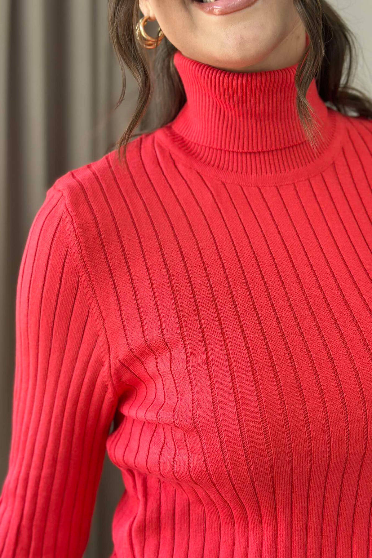 Triko Një Ngjyrëshe Me Jakë Gjysëm Golf Për Femra Në Ngjyrë Portokalli Të Errët