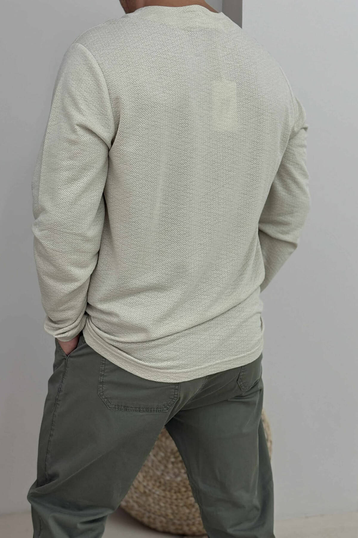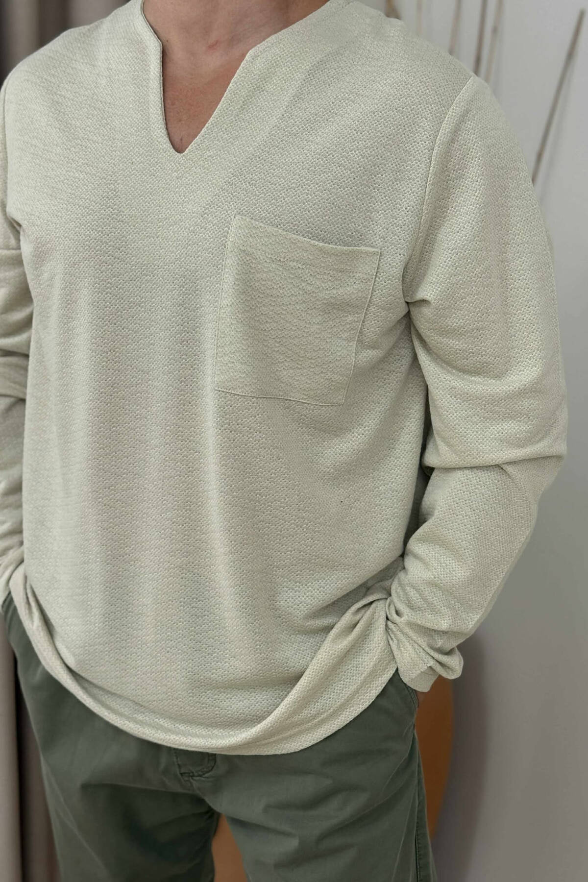 BLUZË E THJESHTE ME DETAJIN E XHEPIT PËR MESHKUJ NË NGJYRËN BEZHË