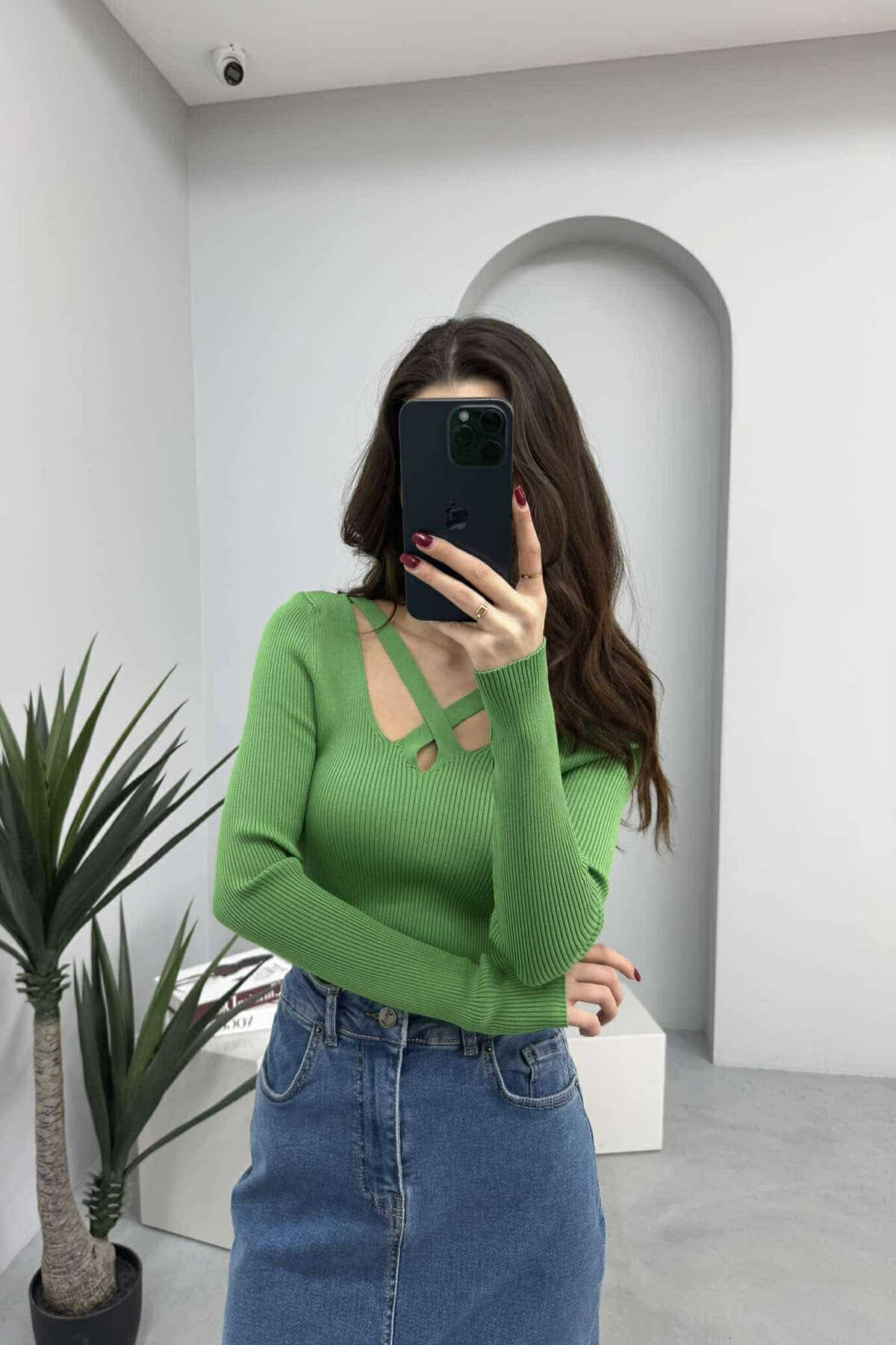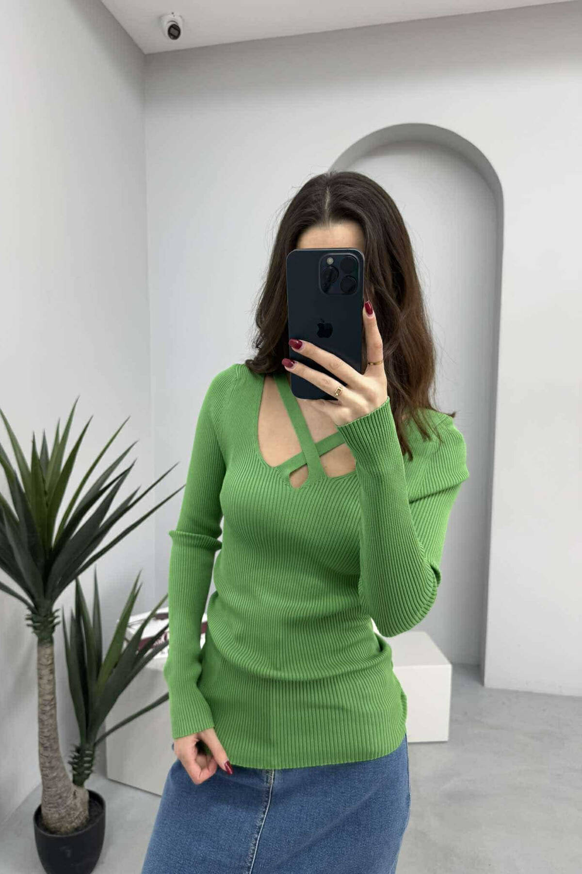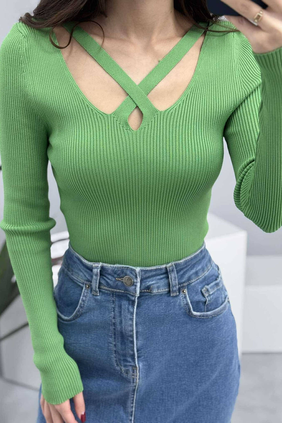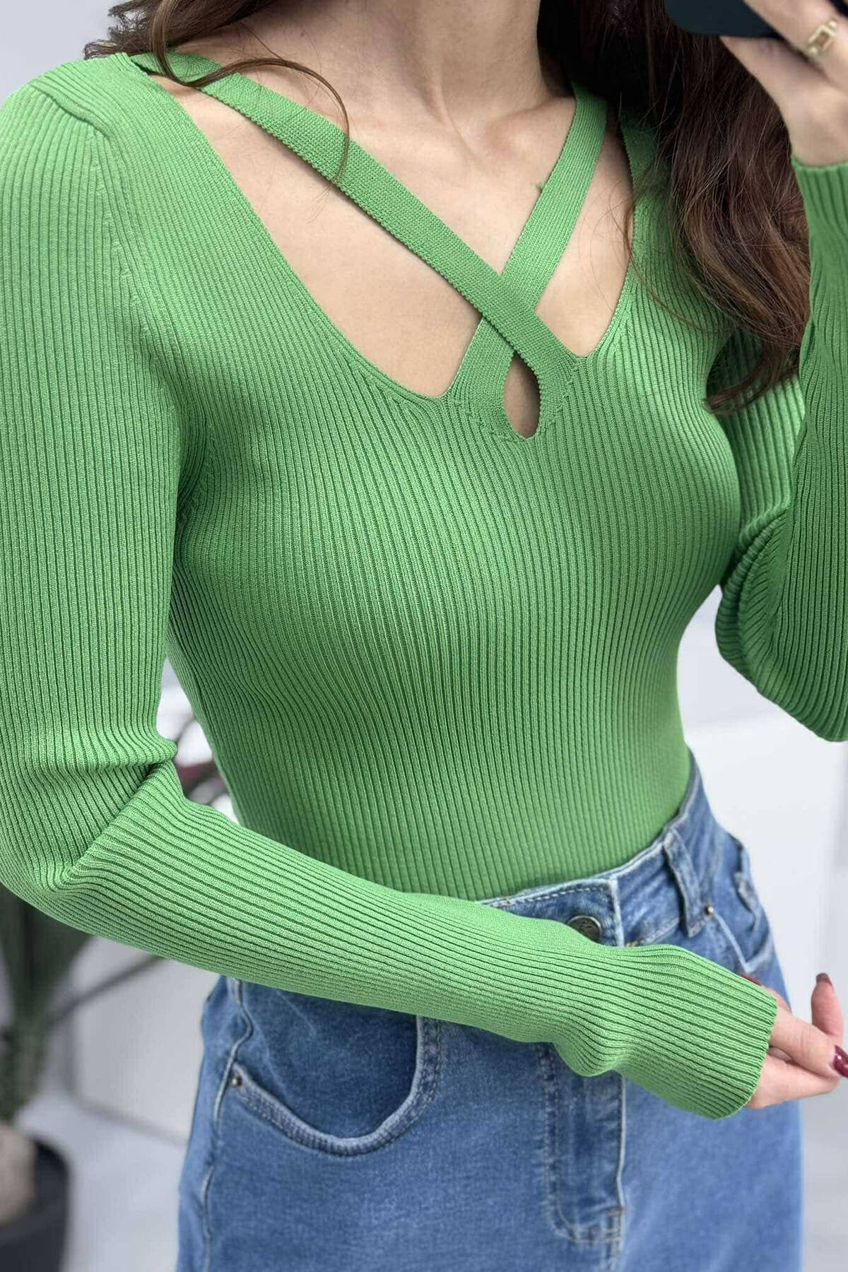 TRIKO NJËNGJYRËSHE ME JAKË V PËR FEMRA NË NGJYRËN JESHILE TË ZBARDHUR