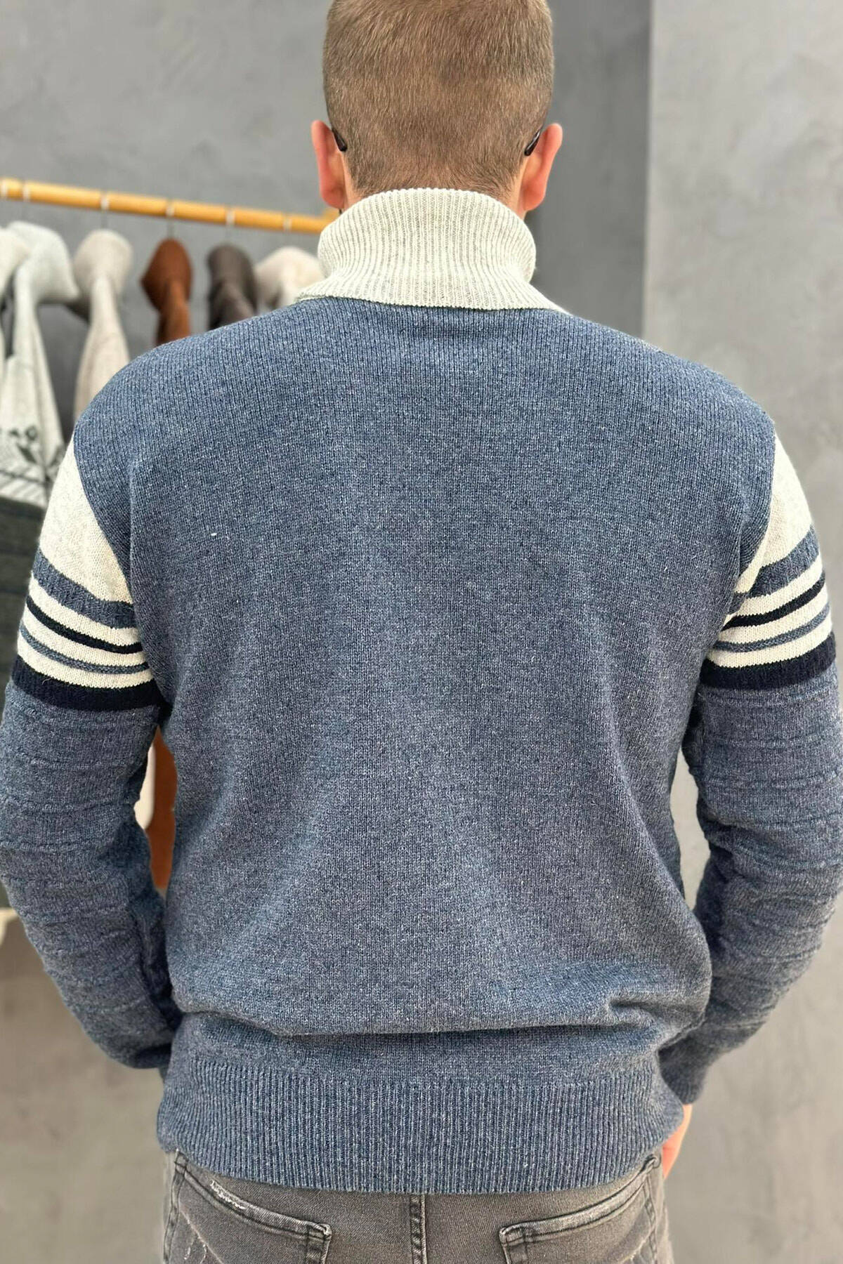 Ngrini stilin tuaj dimëror me pulovrën tonë per meshkuj te nderthurur me dy ngjyra dhe me jake golf. Dizajni klasik dhe nuancat e dyfishta e bëjnë këtë pulovër një përzierje të përsosur të sofistikimit dhe ngrohtësisë.