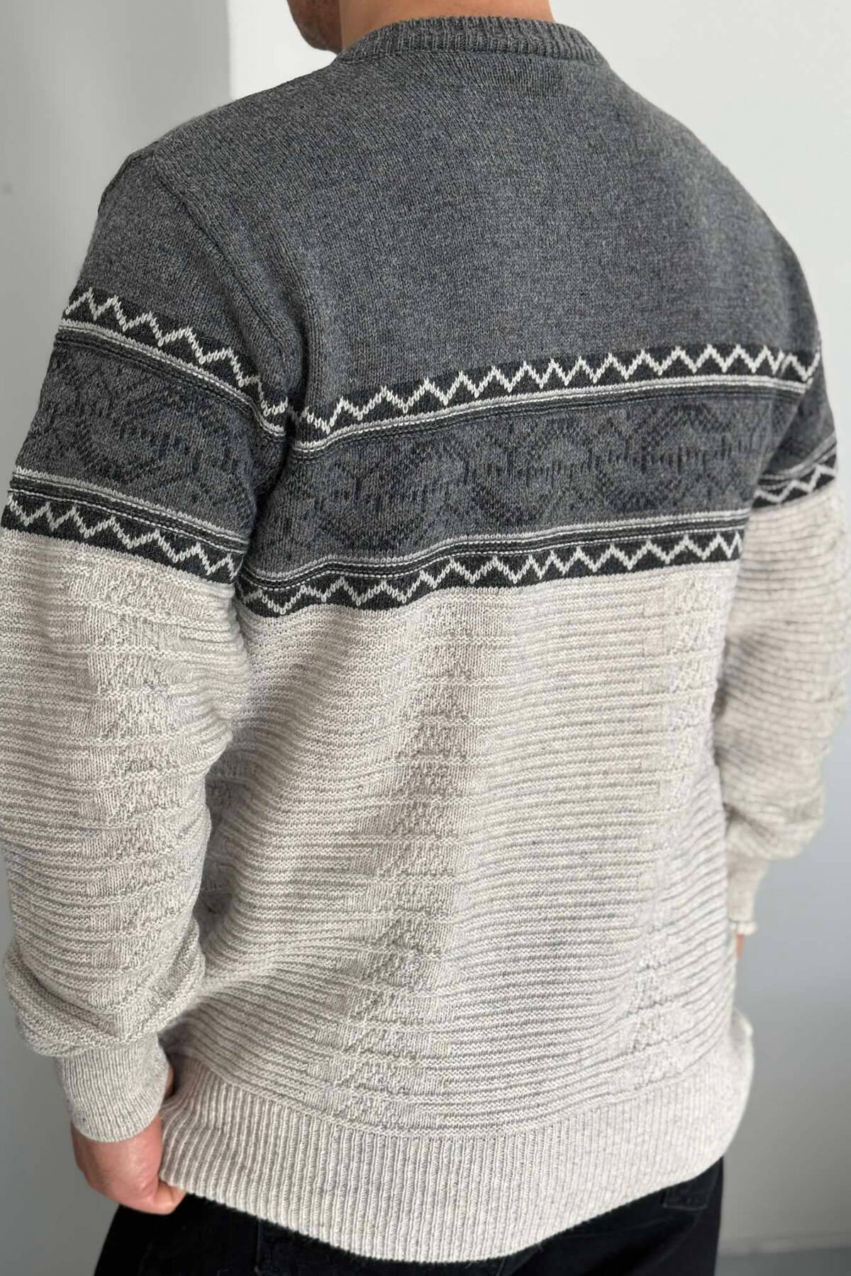 ROUND NECK STRIPED MEN SWEATER GREEN/JESHILE