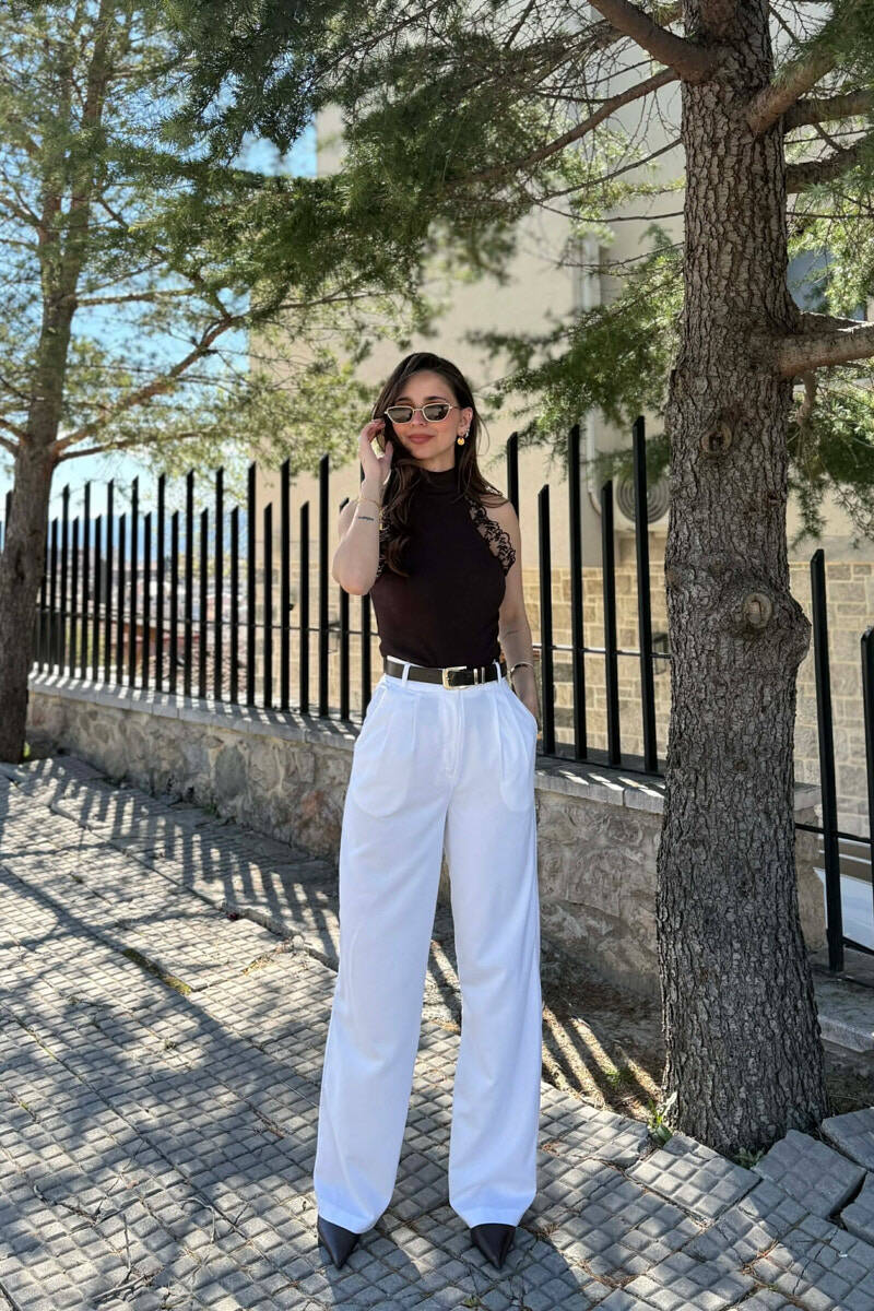 TULLE DETAIL HIGH NECK WOMAN TANK TOP BROWN/KAFE