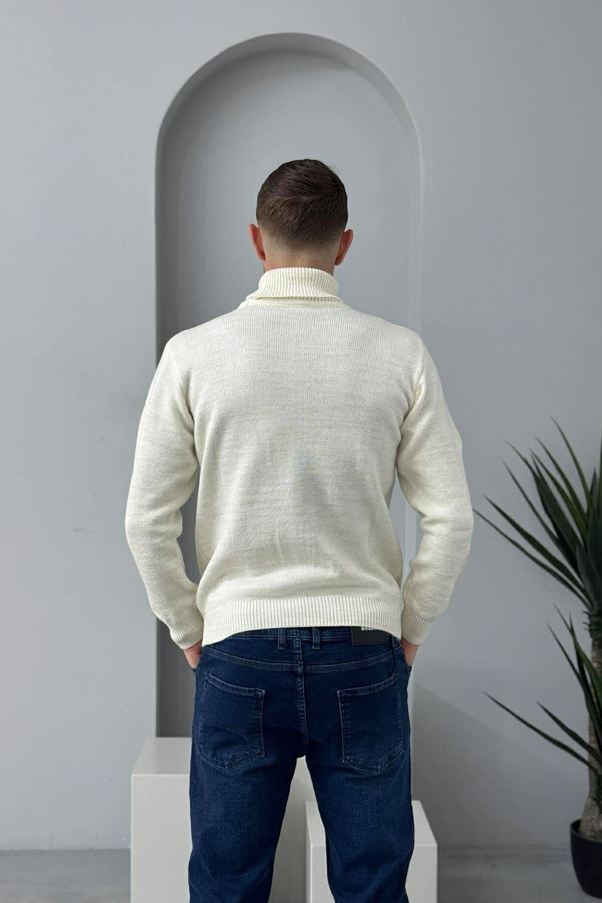 TURTLE NECK ONE COLOR MEN SWEATER CREAM/KREM