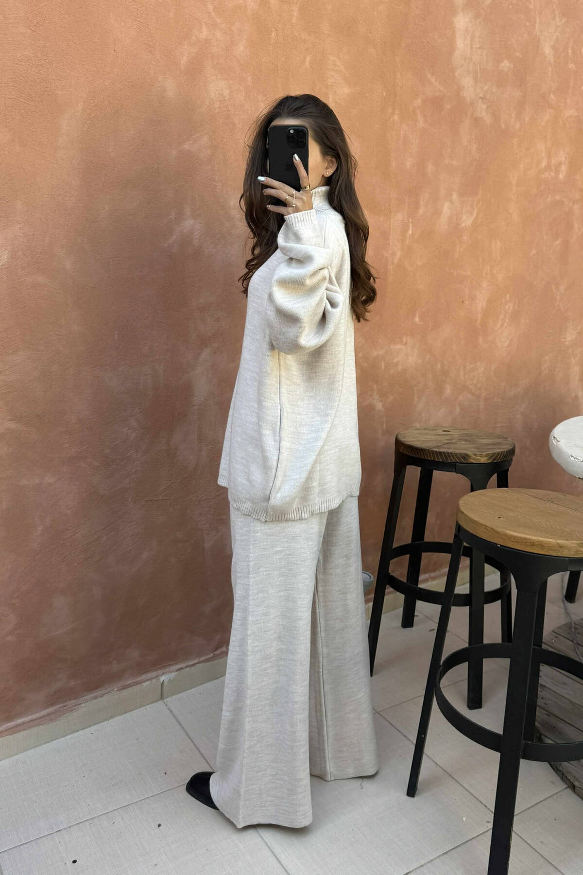 TURTLE NECK SWEATER+TROUSERS WOMEN KNIT SET BEIGE/BEZHE