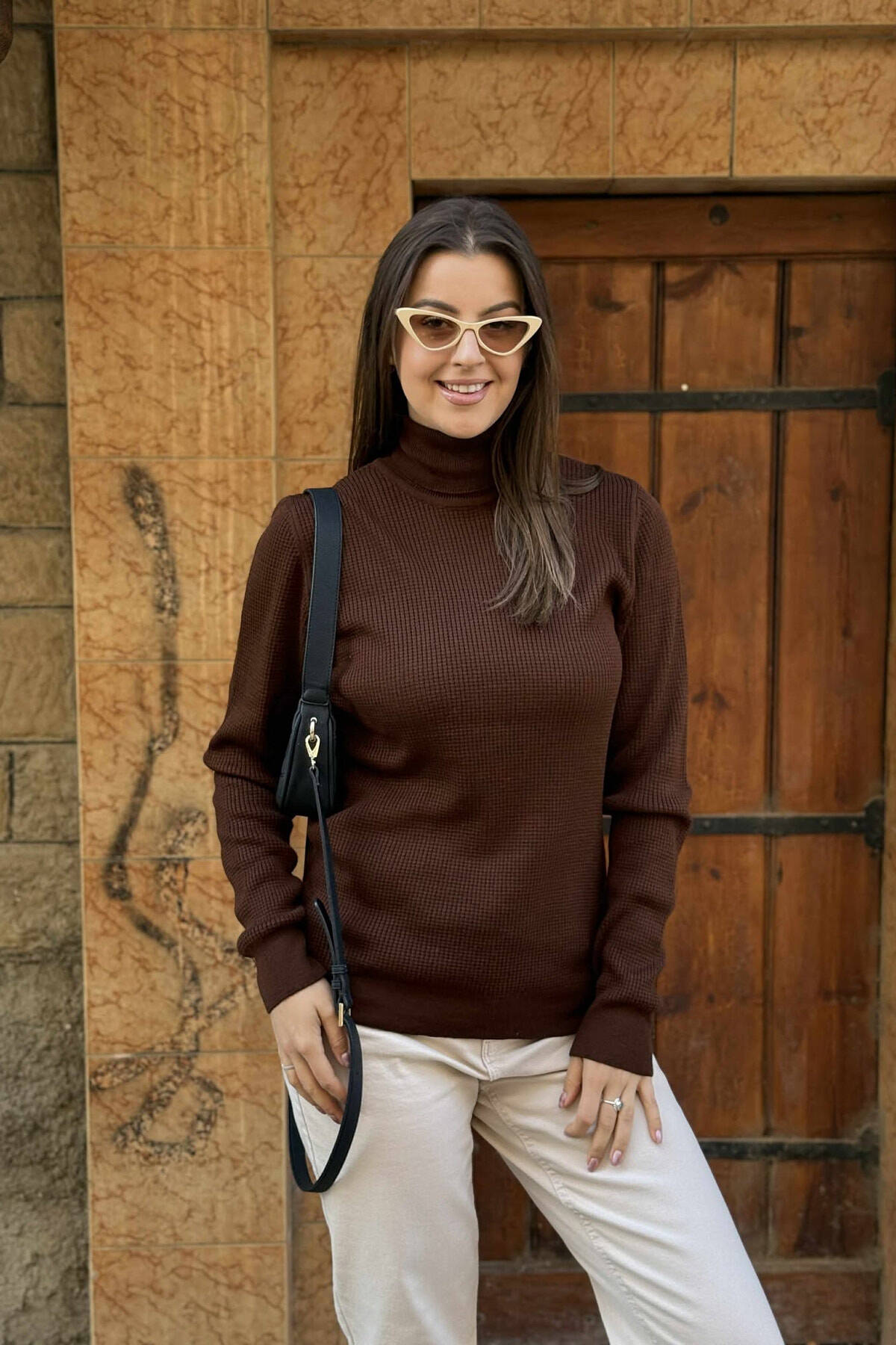 TURTLE NECK WOMEN SWEATSHIRT DARK BROWN/KAE