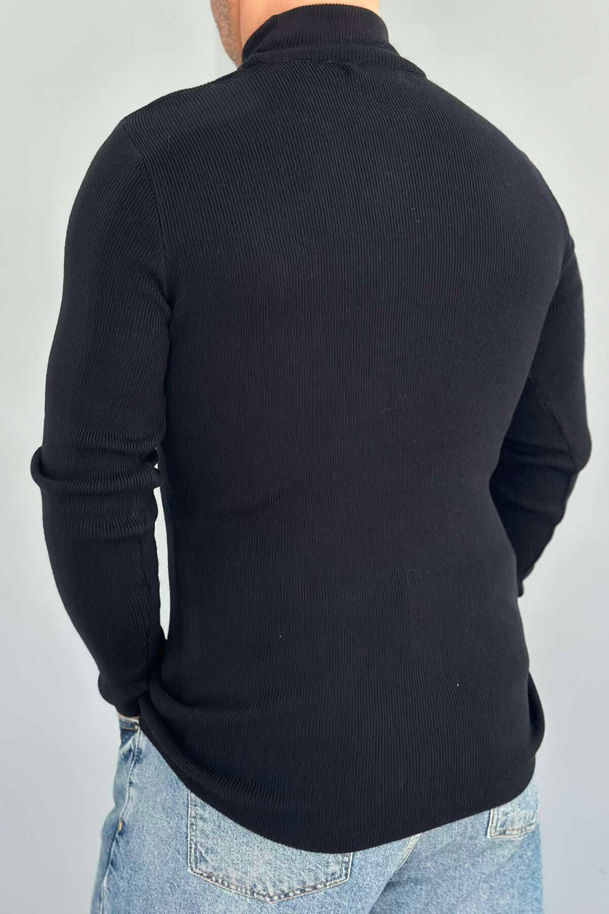 TURTTLE NECK ONE COLOR MEN SWEATER BLACK/ E ZEZE