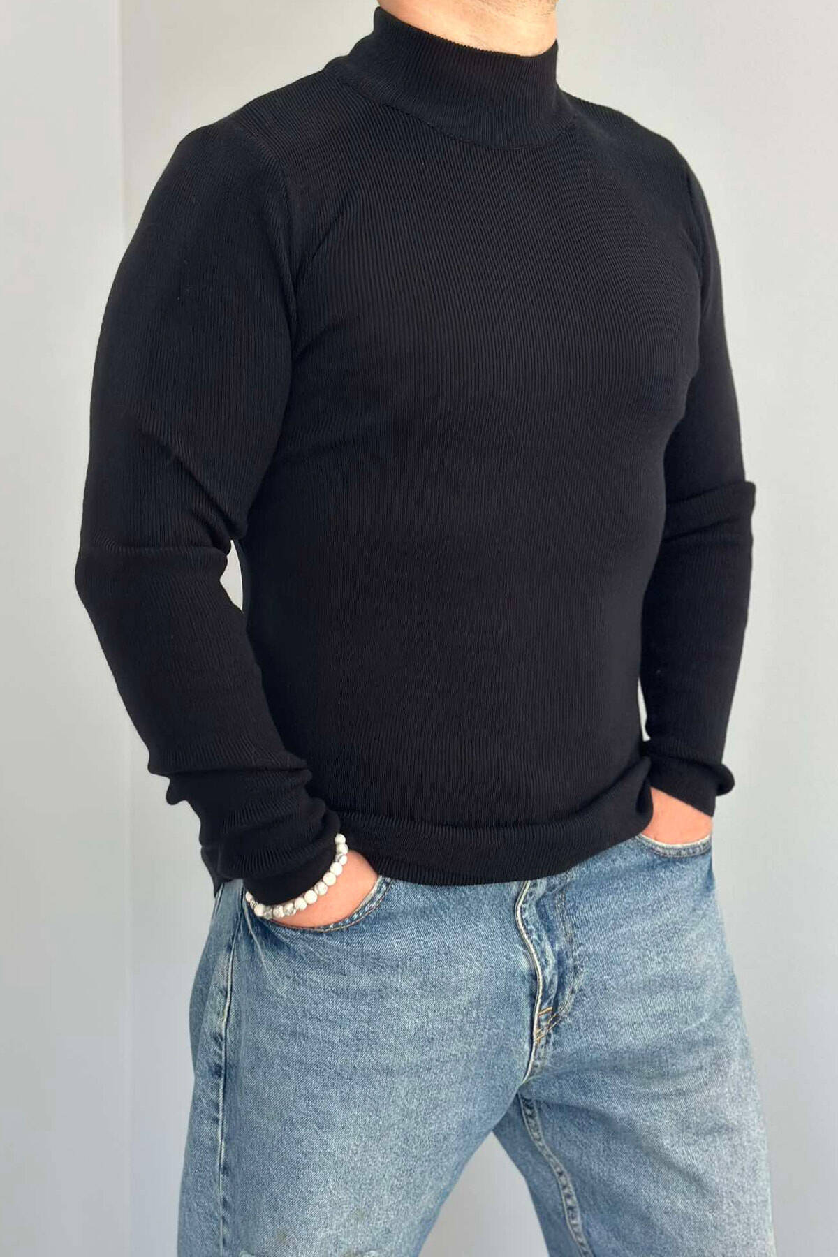 TURTLE NECK ONE COLOR MEN SWEATER BLACK/ E ZEZE