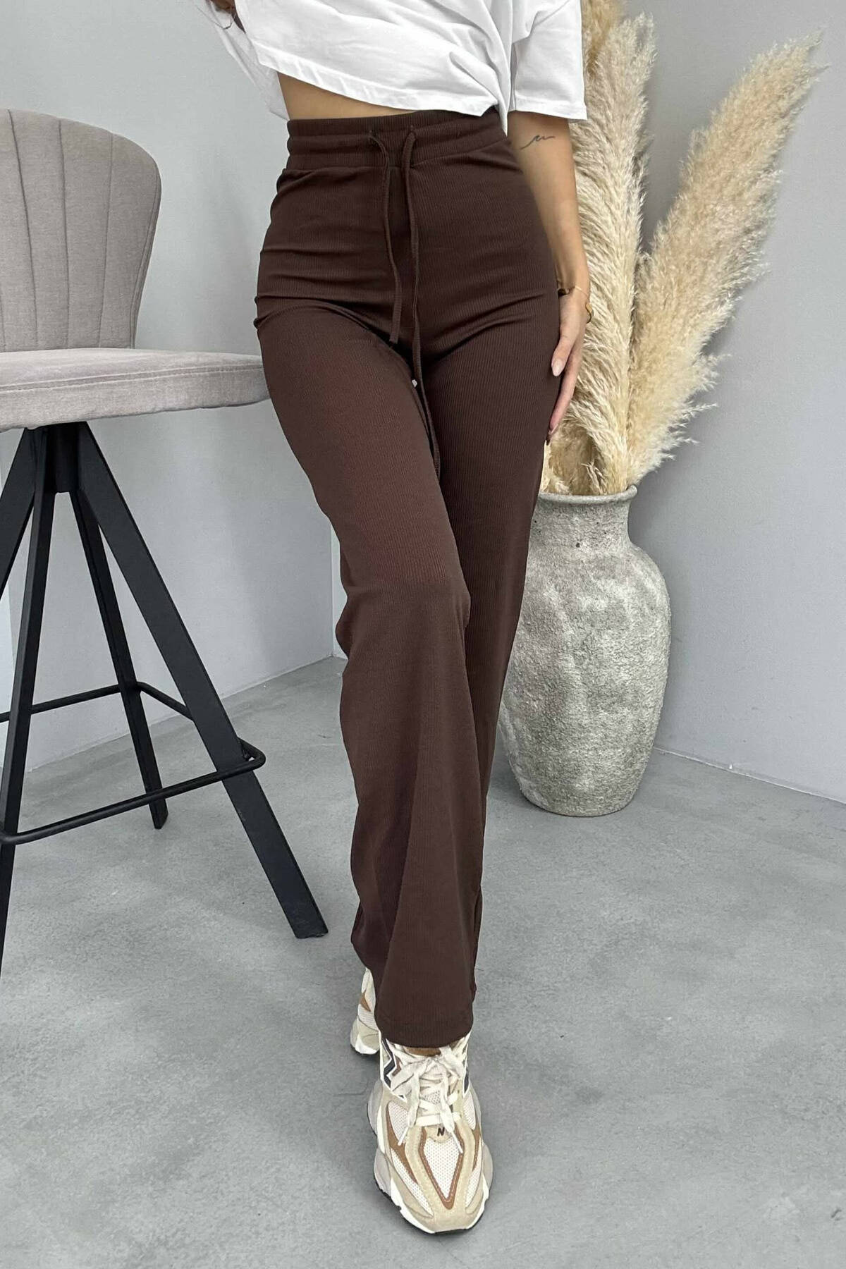 ONE COLOR BELT DETAIL WOMEN SWEATPANTS BROWN/KAFE