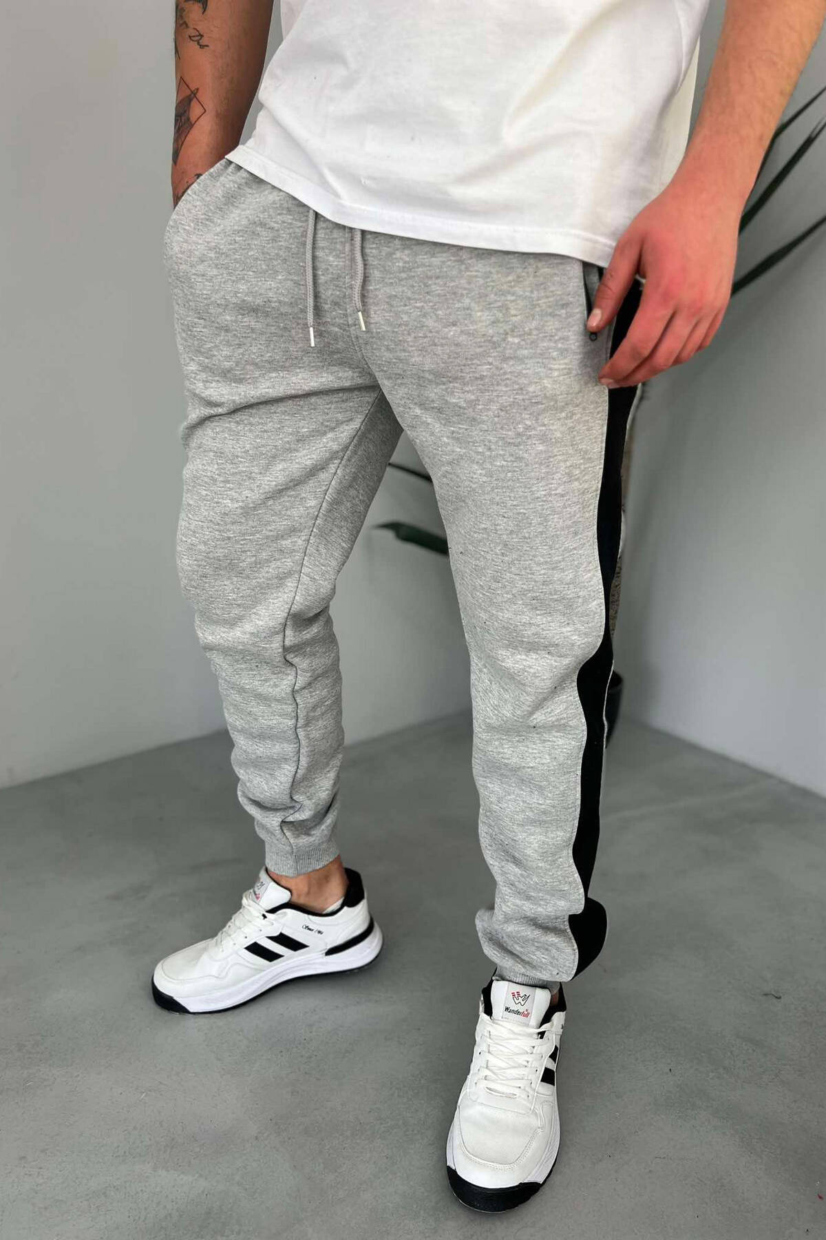 Tuta Me Push Dhe Me Vija Për Meshkuj Në Ngjyrën Gri