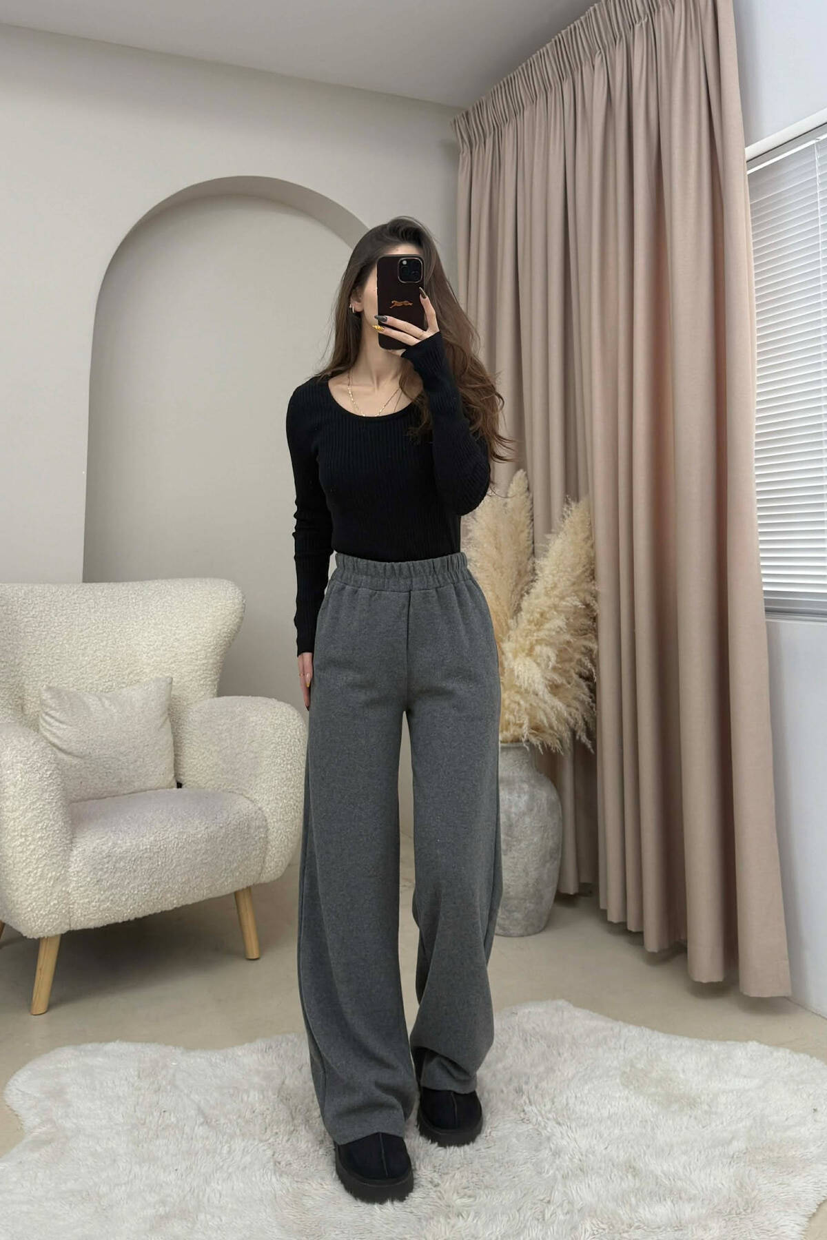 ONE COLOR SIMPLE FLUFFY WOMEN SWEATPANTS BEIGE/BEZHE