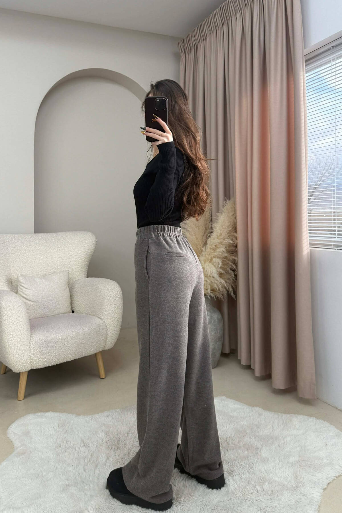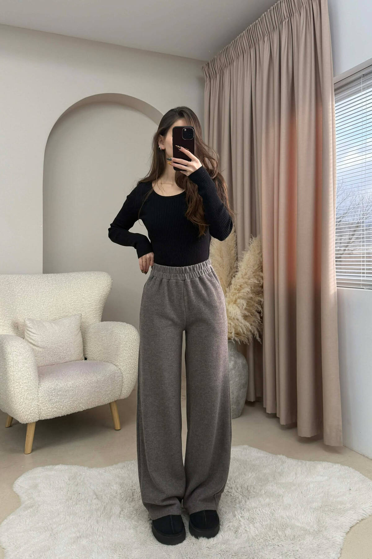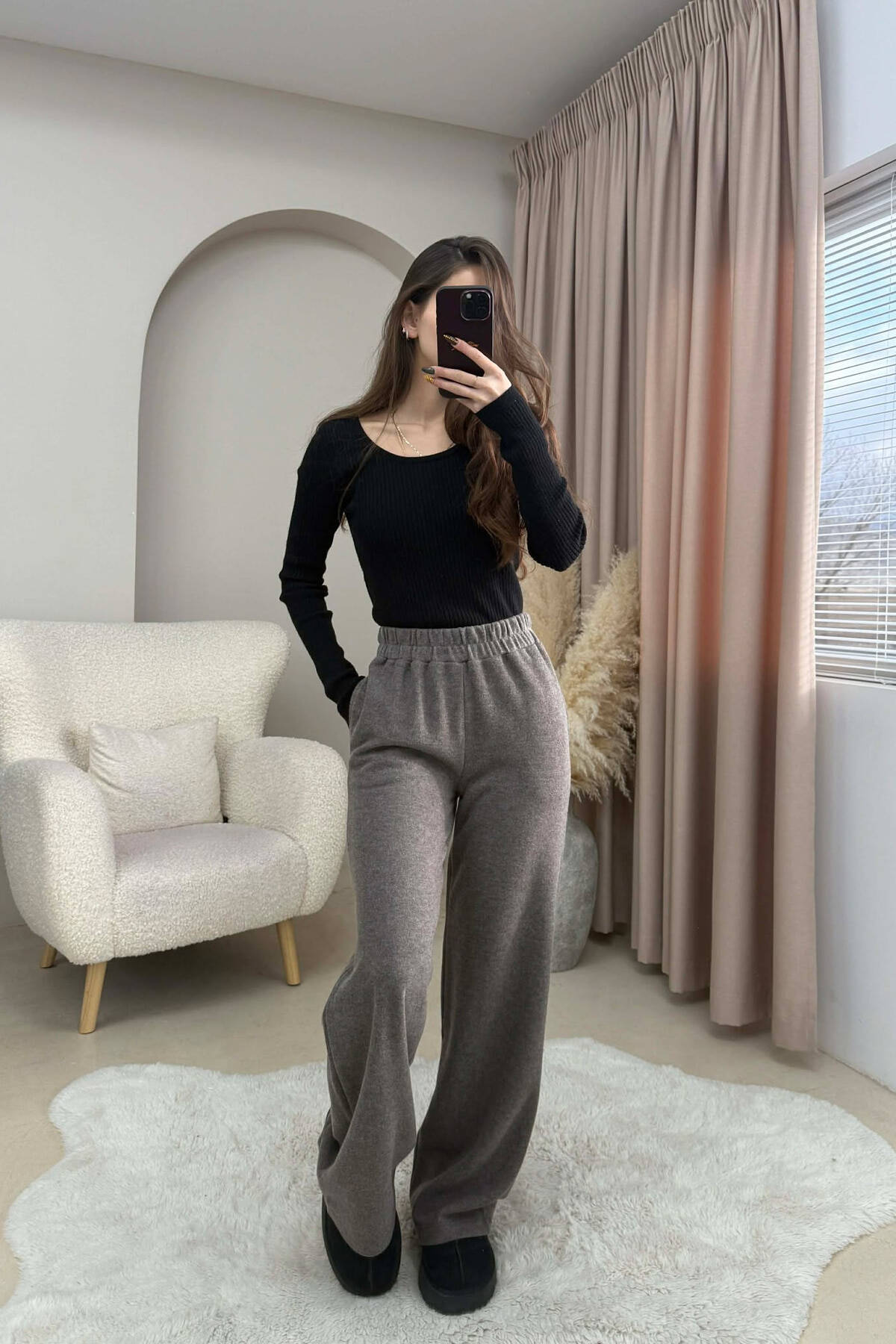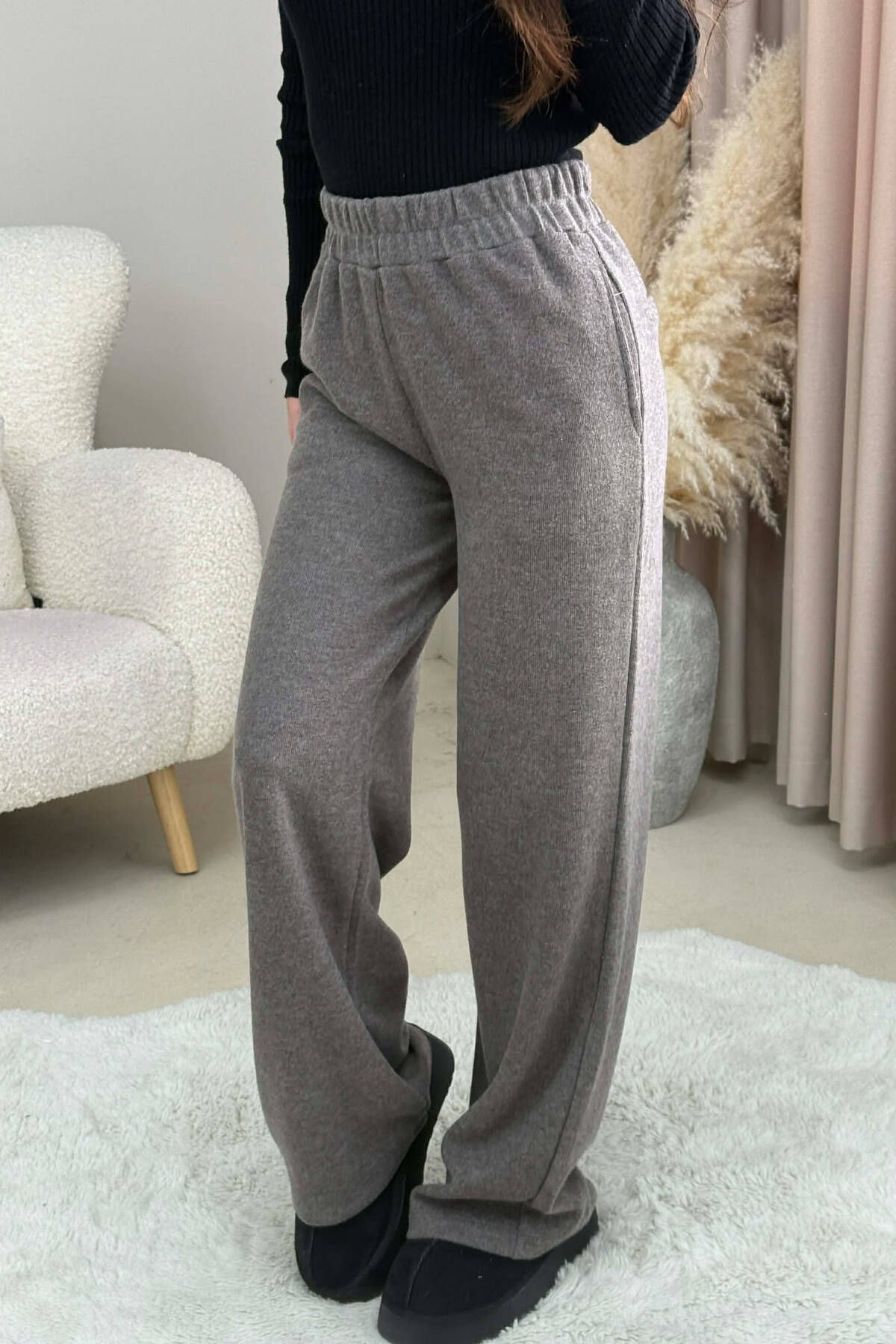 ONE COLOR SIMPLE FLUFFY WOMEN SWEATPANTS BEIGE/BEZHE