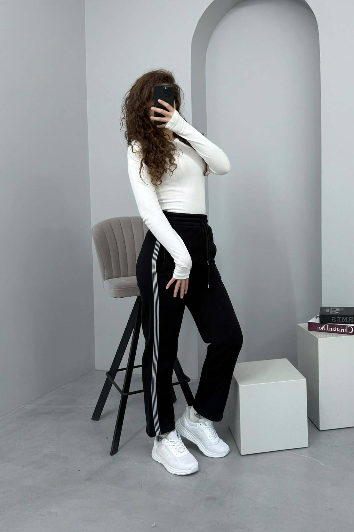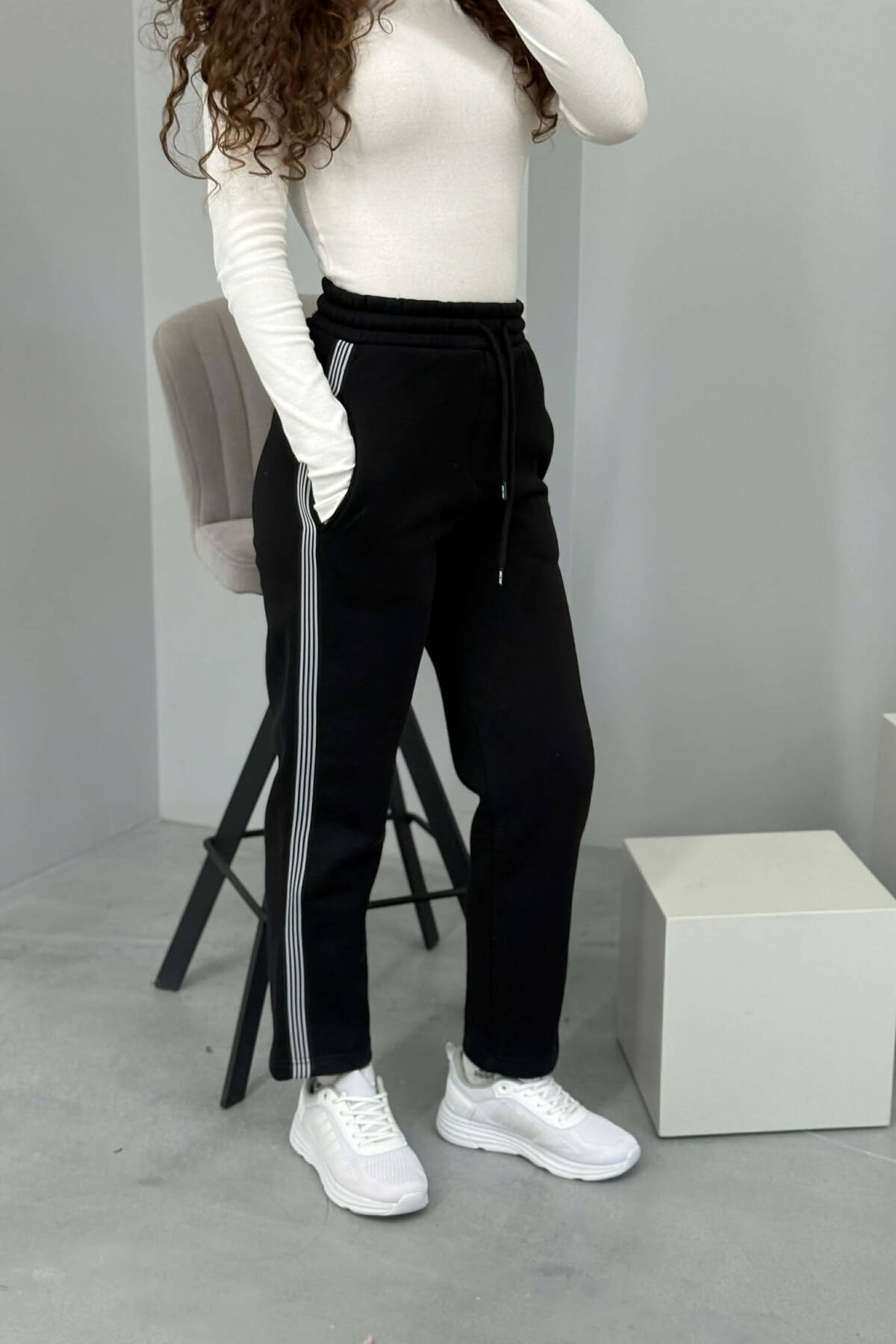 TUTA NJË NGJYRËSHE ME PUSH DHE VIJA PËR FEMRA NË NGJYRË TË ZEZË